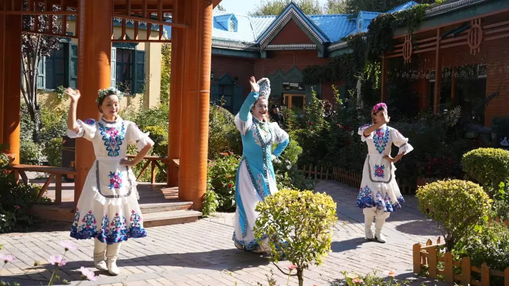 隨後,參訪團前往喀贊其民俗旅遊區,這片國家4A級景區位於伊寧市東南,面積22.9平方公里,核心區12.8平方公里,被譽為「民居博物館」。喀贊其區融合維吾爾族、烏茲別克族等多民族傳統建築與生活風貌,保留了大量歷史悠久的民居,藍色門窗在陽光下閃耀,宛如一幅活色生香的民族畫卷,展現伊犁河谷多元文化魅力。