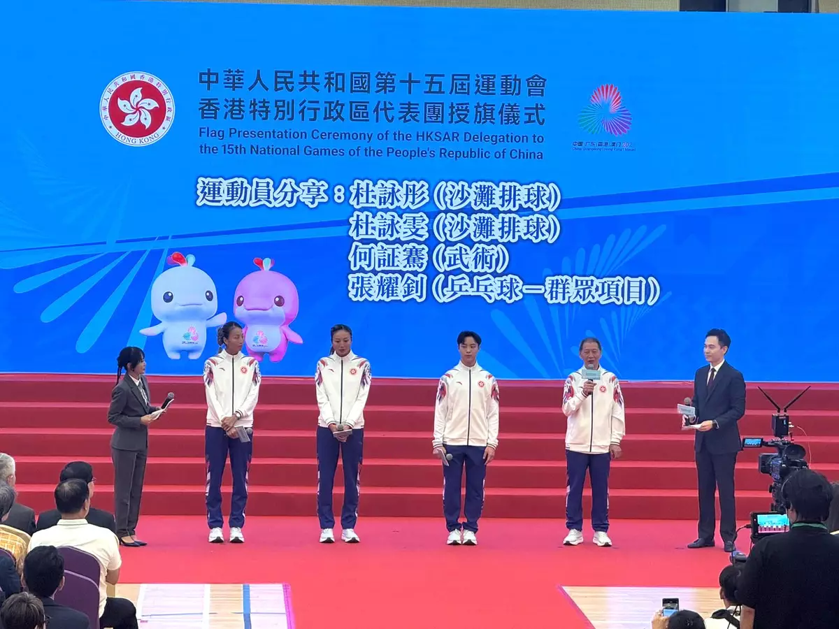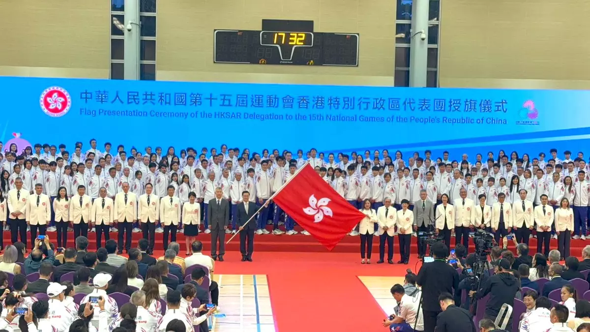 第十五屆全國運動會11月9日至21日在廣東、香港和澳門舉行,行政長官李家超下午向香港特別行政區代表團授旗。