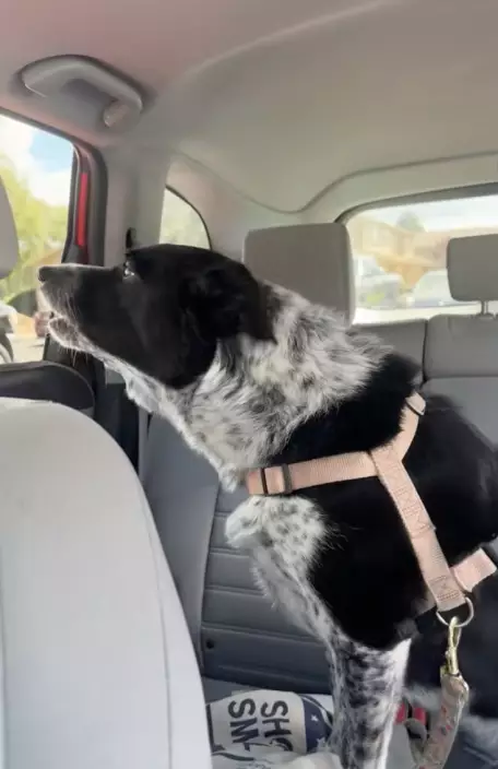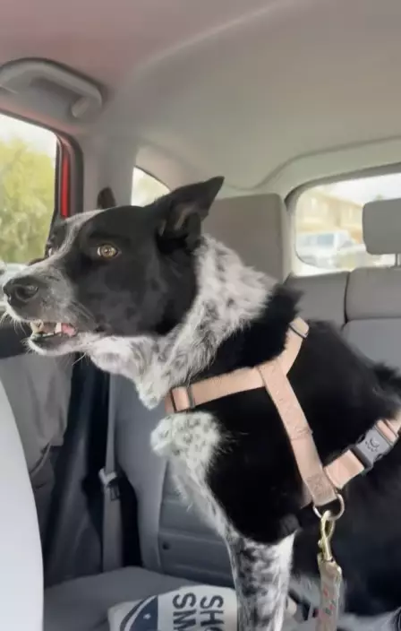 日前,國外一名女子「@belmelly」於TikTok上分享一段爆笑影片指,當日駕車時,坐在後座的混血邊境牧羊犬突然對著隔壁車上的方向狂吠不止,神情緊張如臨大敵。她好奇回頭查看,發現真相後瞬間哭笑不得。
