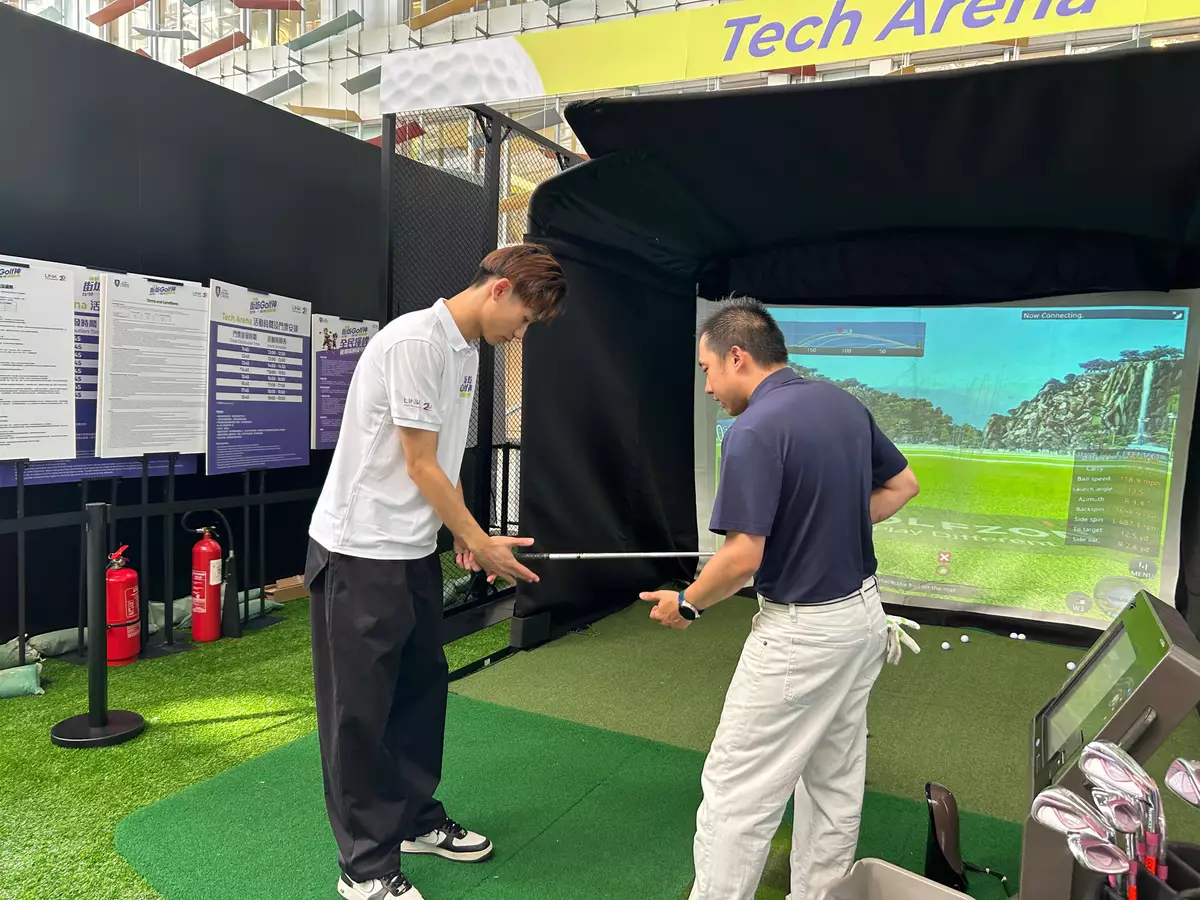 參加者可以在「高爾夫球模擬器體驗」區提升揮桿技術。