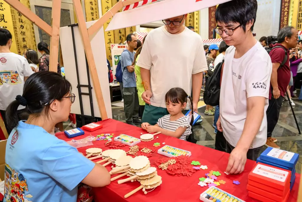 東華三院設多個非遺文化攤位,提供糖畫、中國結、漆扇及麵粉公仔等傳統手工藝體驗。