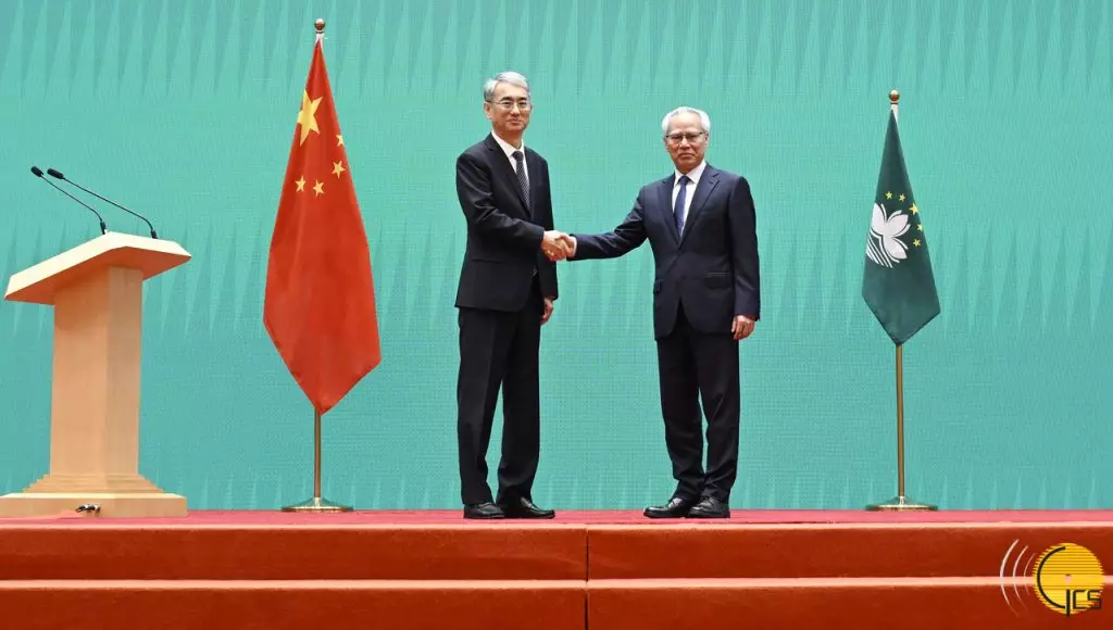 行政長官岑浩輝與第八屆立法會主席張永春合影。澳門政府新聞局圖片