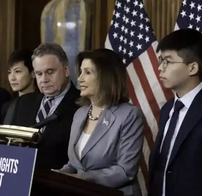 在2019年9月香港黑暴運動爆發的高峰,佩洛西在華盛頓接見黃之鋒、何韻詩等人。