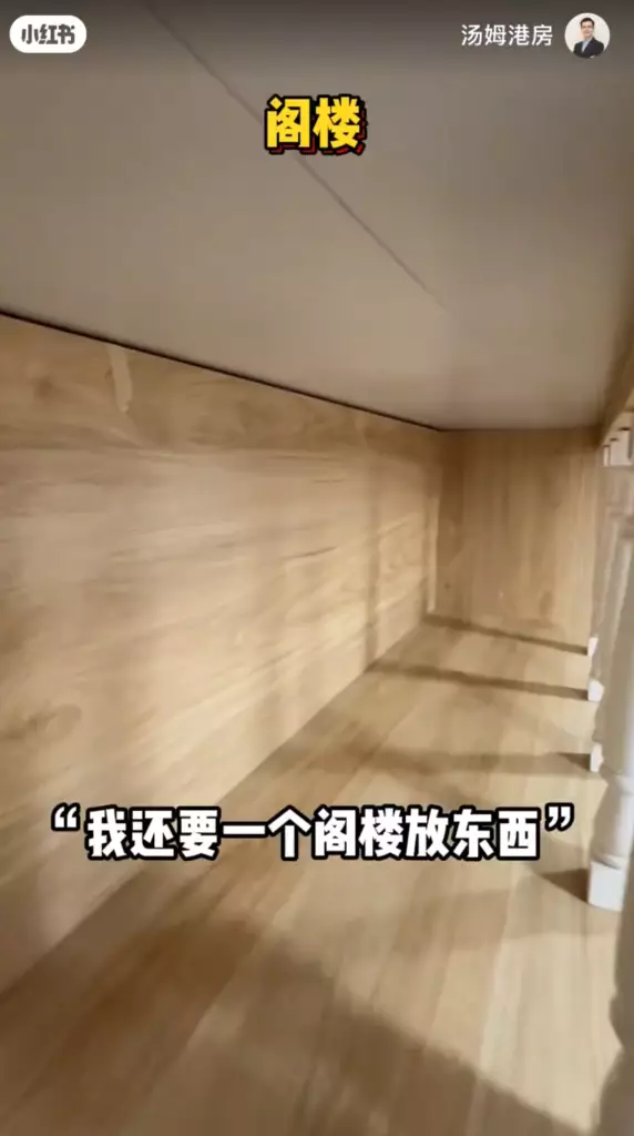 那條引人注目的旋轉樓梯,實際用途是連接收納閣樓,方便住戶伸手取行李雜物。不過有網民認為樓梯佔用寶貴空間,直言「拆了家裡還要大一點」。