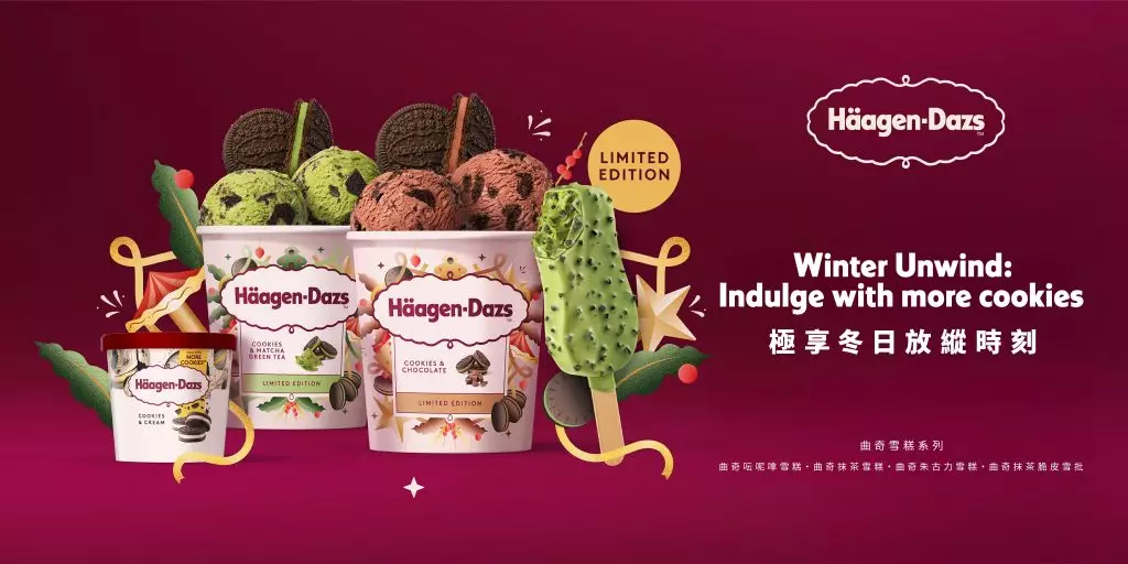 Häagen-Dazs™以其經典的曲奇呍呢嗱雪糕為靈感,推出兩款期間限定「曲奇雪糕系列」,包括兩款新口味——「曲奇抹茶雪糕」及「曲奇朱古力雪糕」重新演繹節日奢華享受。