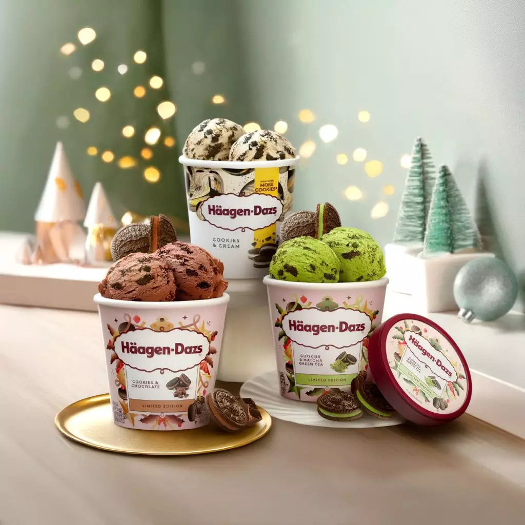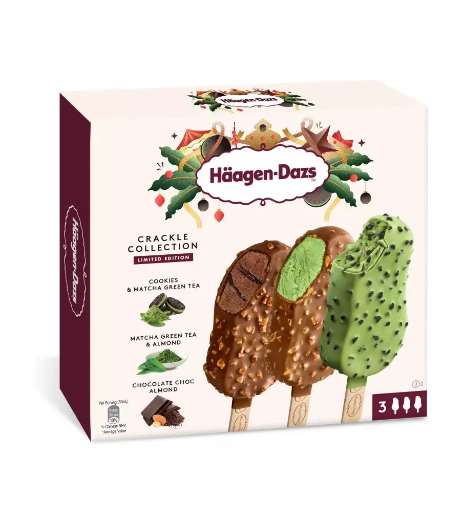 今年的節慶限定系列Häagen-Dazs™以標誌性的曲奇呍呢嗱雪糕作為靈感,將完美烘焙的可可曲奇碎融入抹茶及朱古力兩款人氣雪糕口味,讓經典滋味在節日中煥發新意。