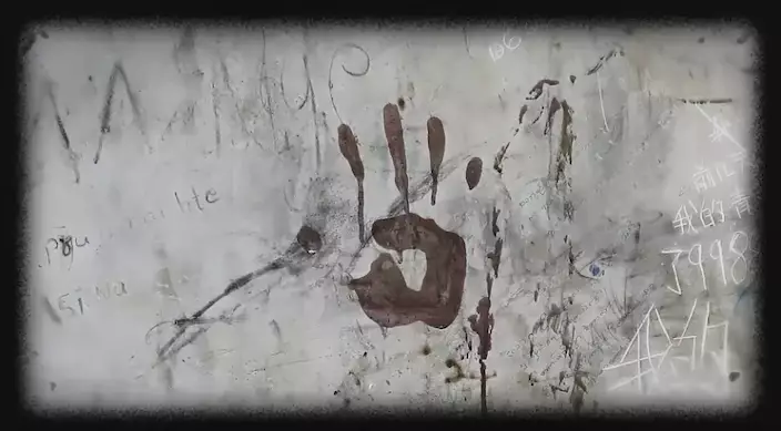 徐發啓犯罪集團關押電詐人員的小黑屋內,牆上留下的血手印。(公安部供圖)