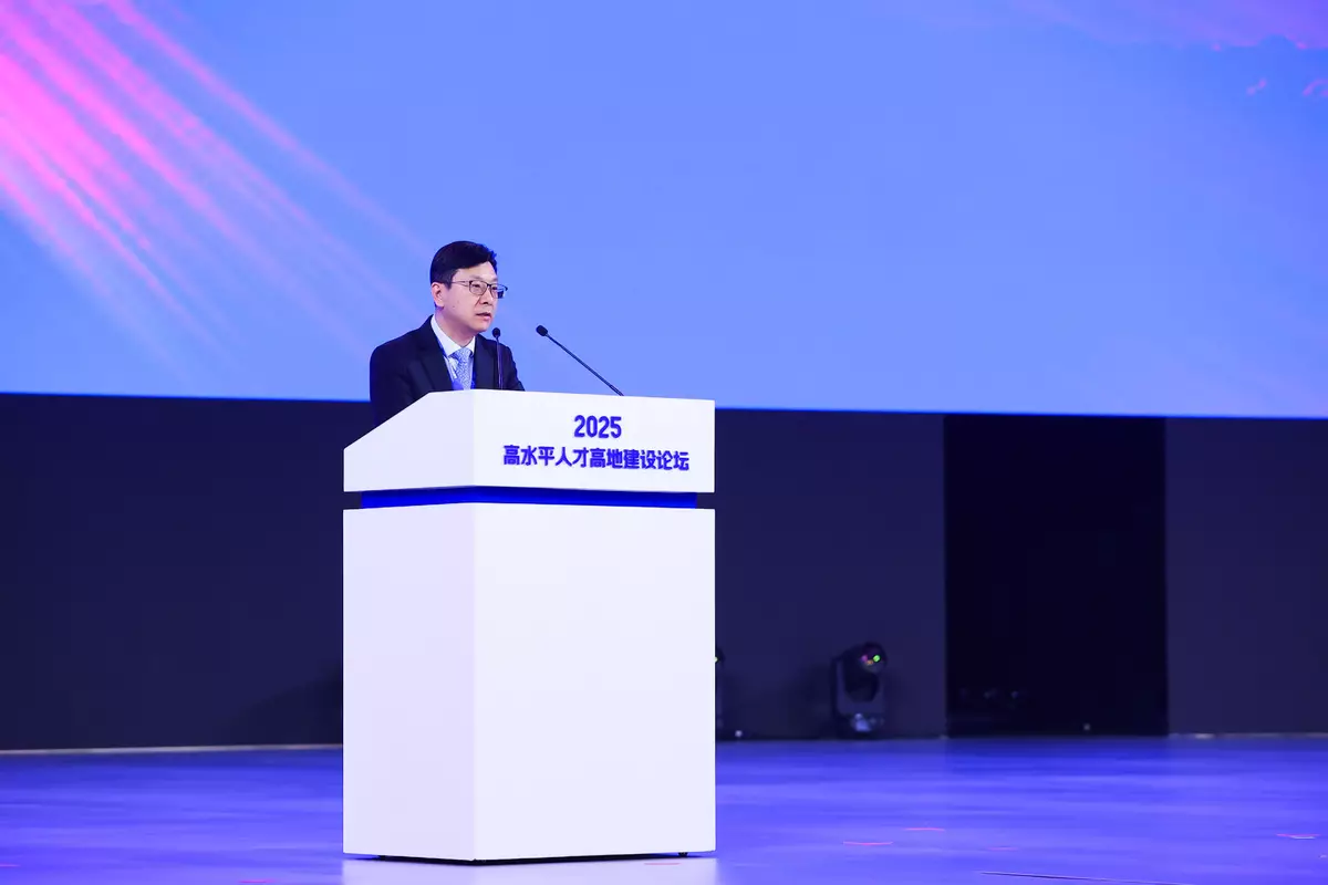 孫玉菡今日上午在HICOOL 2025全球創業者峰會高水平人才高地建設論壇上致辭。 政府新聞處圖片