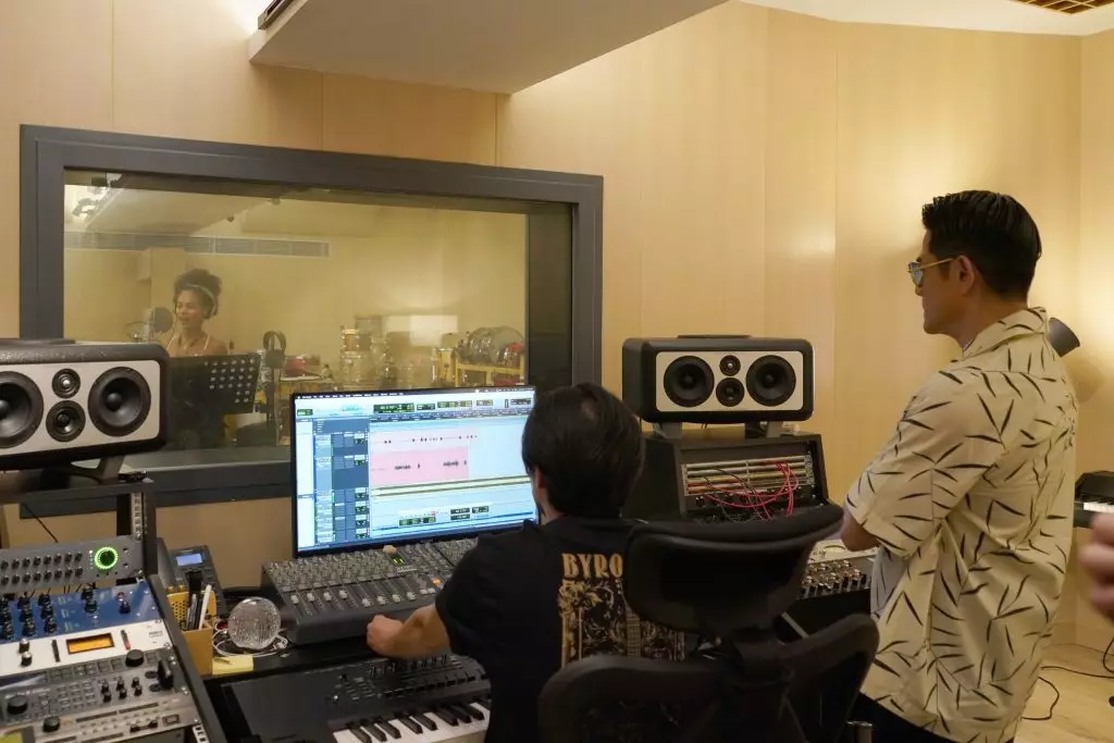 繼八月驚喜現身中環大館,給予成員寶貴意見及分享 如何享受演出後,日前Aaron再次特意抽空親臨錄音室,細聽NowUnited 的新歌,並向他 們分享一些錄音上的技巧,同時更和各成員解說歌詞和編曲帶出的力量,令他們可以有不 同層次的演繹方法,並對 Now United 個別成員的演唱方法 ,也作細意分析,賦予稱讚之餘更給予寶貴意見,包括新成員曾家瑩(Ariel)、來自巴西的 Desirée Santos 及來自北京的王南鈞 (Krystian)。當中 Aaron 提議 Ariel:「部份歌詞可以嘗試用氣聲演繹,《加入一點神秘感和型格。」Ariel經指導後,演繹出來的感覺真的甚見效果,Aaron 讃其領悟力甚高。