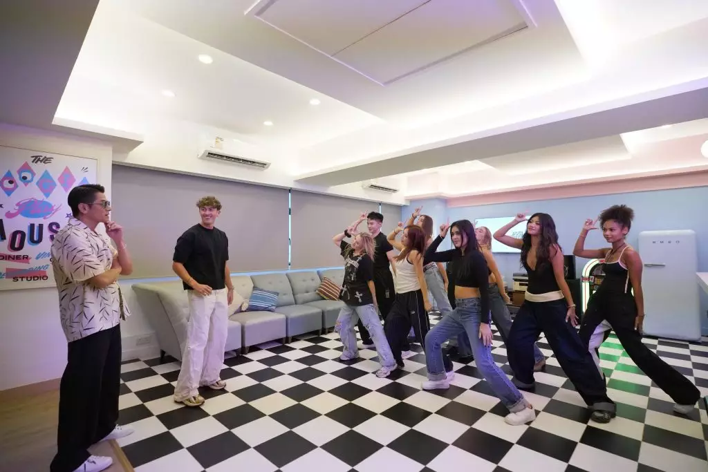 Aaron與來Academy of Pop舞蹈總監Nicky Andersen交換心得及意見