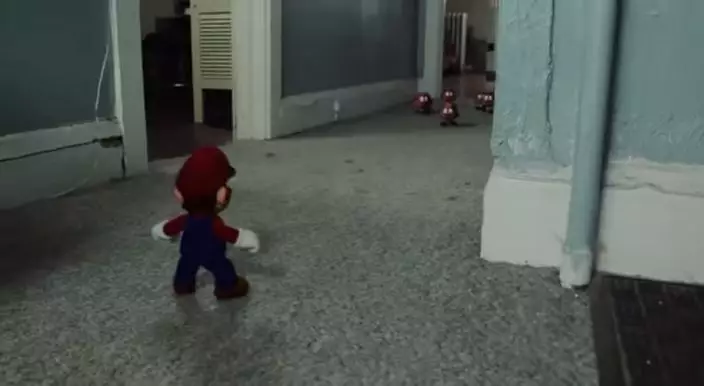 美國動畫師John Huffnagle將法用短片實現,短片迅即爆紅 - 在冰天雪地的紐約,John打機後關電視離開。怎料電視機突然重啟,Mario乘勢跳出來向John父母家進發,沿途踩蘑菇、踩烏龜,踢龜殼,幾經波折到達目的地拉旗,任務完成!至於他的家嘛,受到嚴重破壞囉......