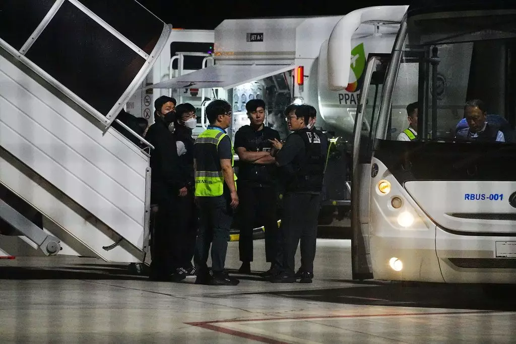 接載他們的航機當地早上8時許返抵仁川國際機場。負責押送的190多名警員也一同乘