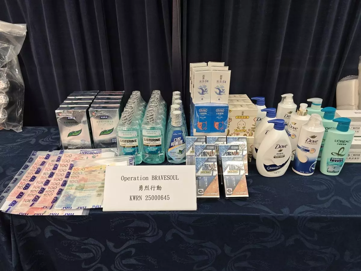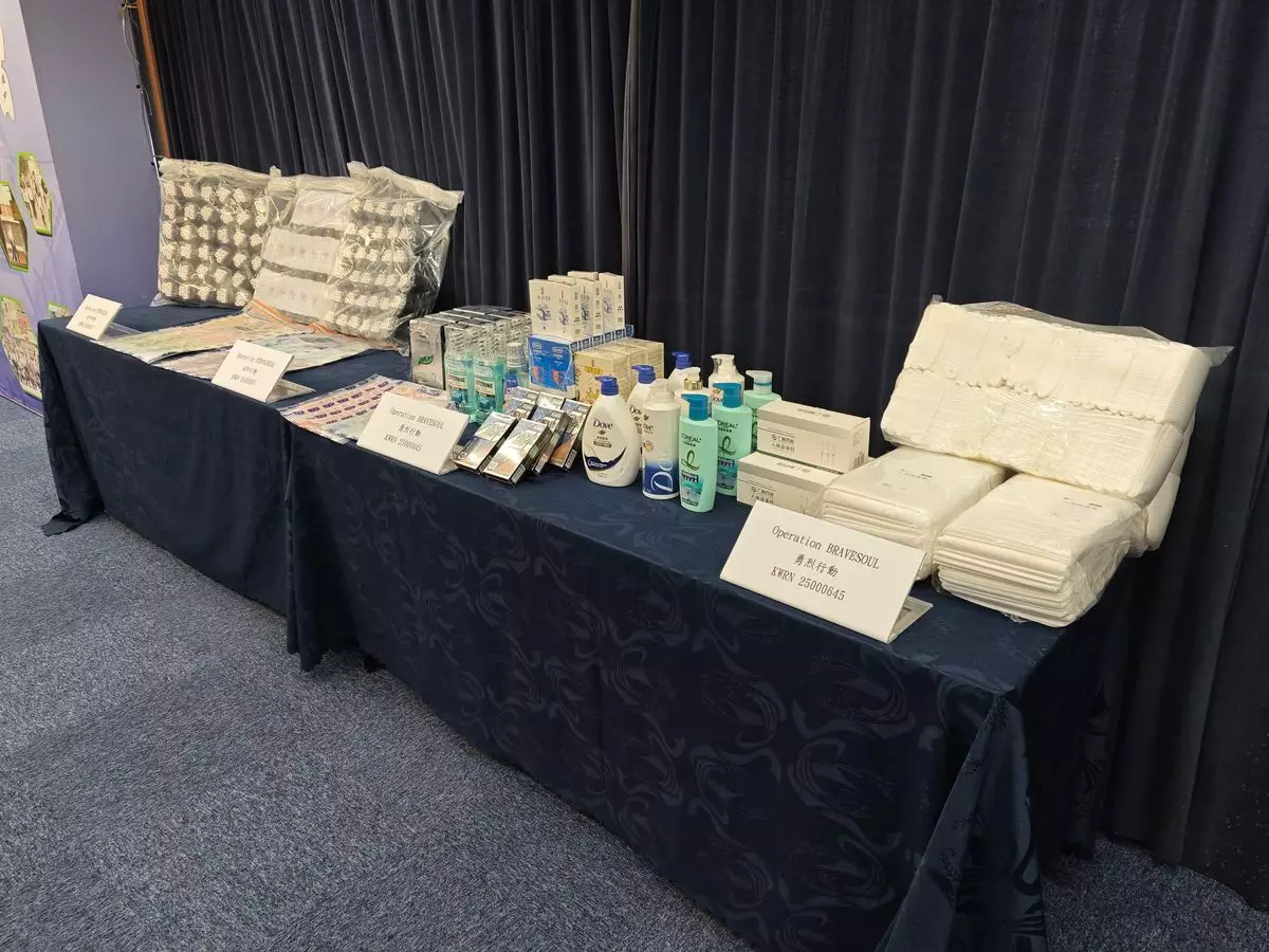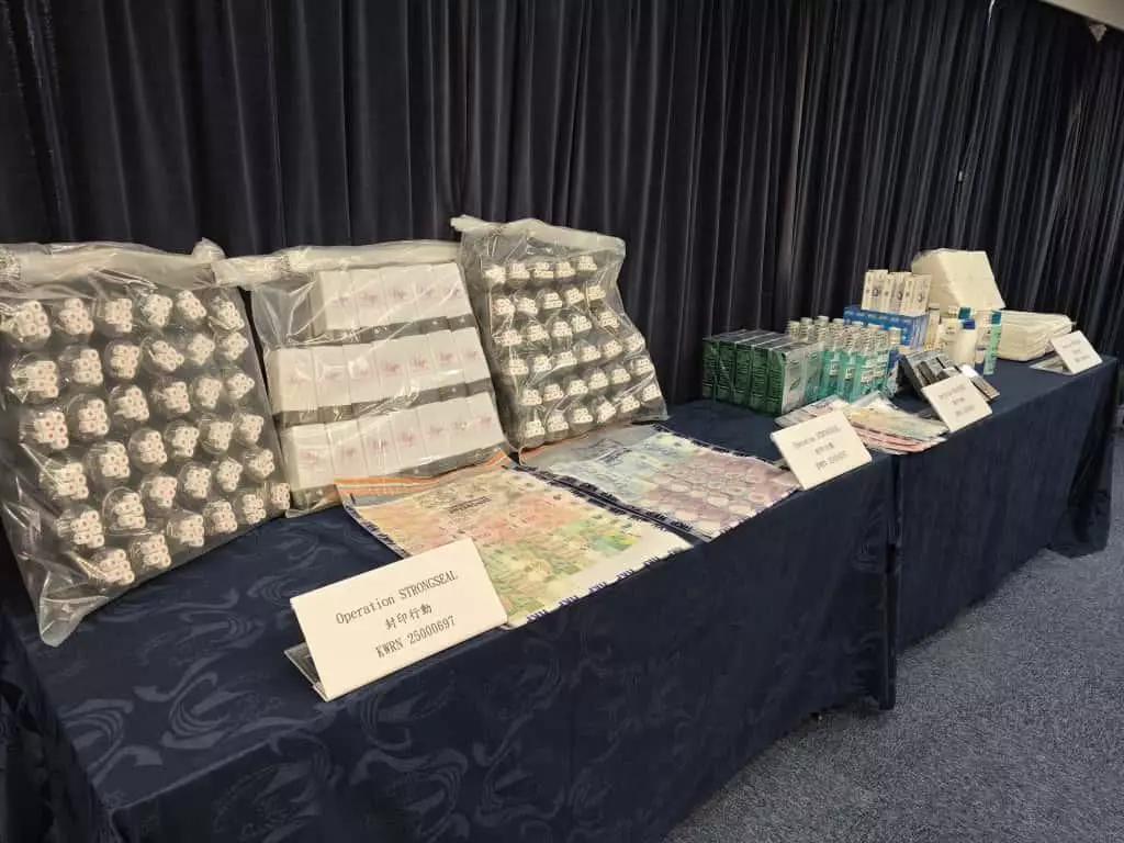 西九龍刑事部展開大型掃黃行動,包括針對操控未成年少女賣淫的「勇烈」行動,以及打擊黑幫非法僱用外籍女子陪酒的「封印」行動。圖為檢獲的證物。警方圖片