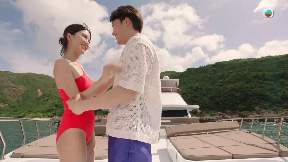 昨晚(10月17日)一集,無綫小花陳聖瑜再度出招!劇情講述身穿橙色泳衣的陳星妤,向老公陳浚霆瘋狂繳功撒嬌求獎勵,期間二人不但攬到實一實,星妤更會一嘢跳向陳浚霆懷抱大玩「人肉360旋轉」。對此,陳星妤透露拍攝當日是自己第一日開工,並謂拍攝轉圈戲份時,全靠陳浚霆幫手遮著重要部分防走光。至於陳浚霆,則強調事先有與星妤做好溝通,並笑言由於拍攝時要顧慮太多事情,所以全程拍至「唉唉聲」,相當搞笑。