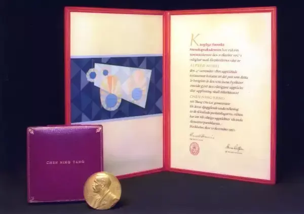 1956年,楊振寧與李政道共同發表論文,提出在弱相互作用下宇稱可以不守恆的思想及實驗檢驗方案。這一革命性觀念很快被吳健雄等人實驗證實。因「對宇稱不守恆定律的深刻探索以及由此帶來的基本粒子領域的許多重要發現」,兩人榮獲1957年諾貝爾物理學獎,成為最早獲得諾貝爾獎的中國人。楊振寧曾回憶說:「這個發現改變了我們對自然界的理解,是物理學史上的一個轉折點。」
