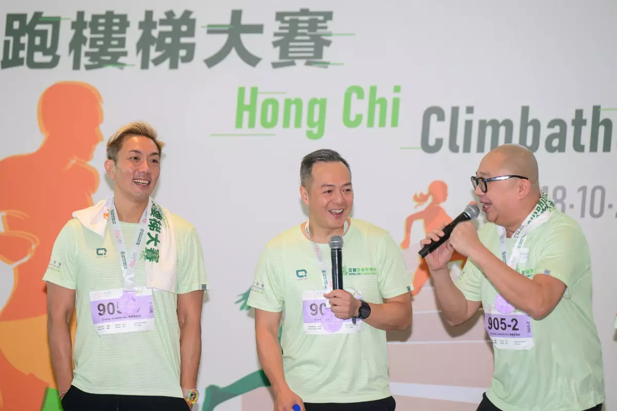 警務處處長周一鳴、藝人林盛斌及歌手劉浩龍完成「匡智慈善星級跑」後分享感受。