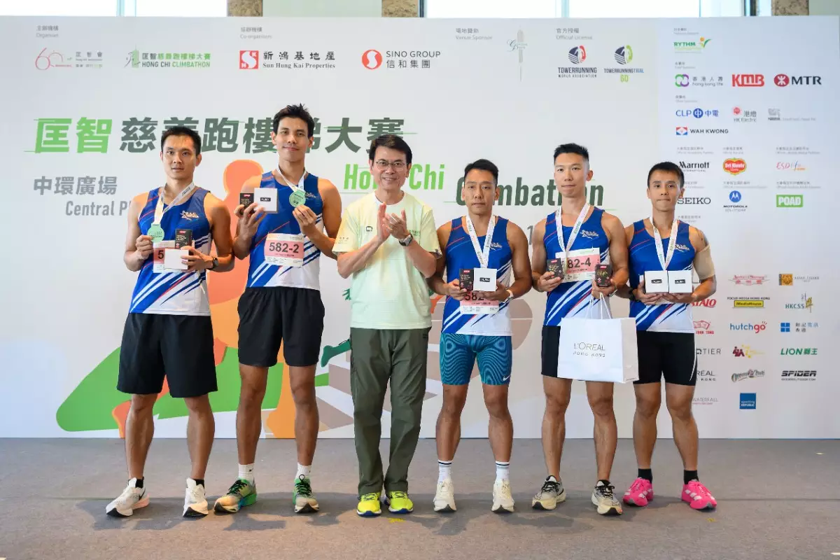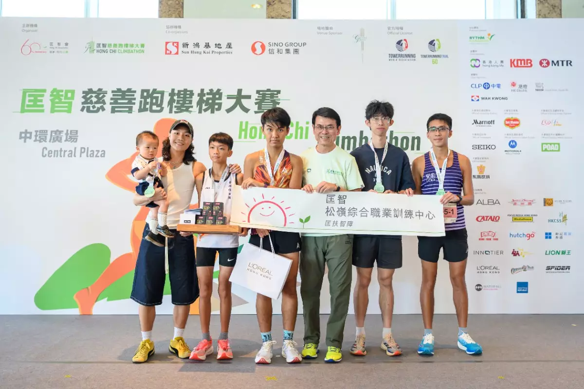 匡智會主席邱騰華先生頒獎予75層接力賽共融組冠軍。