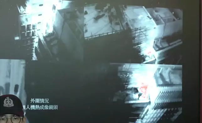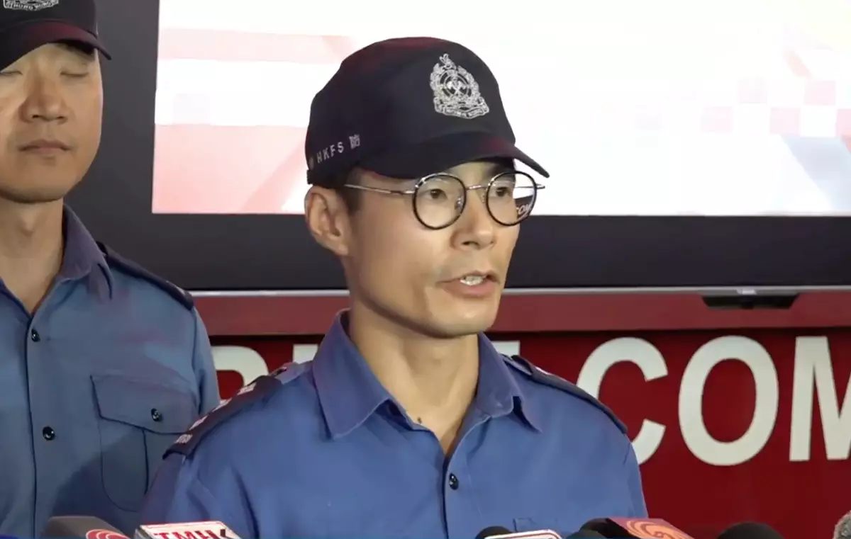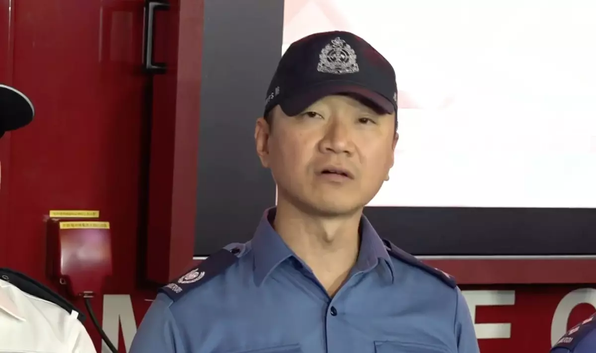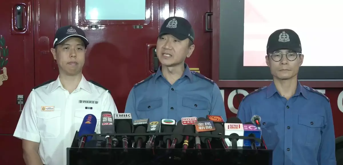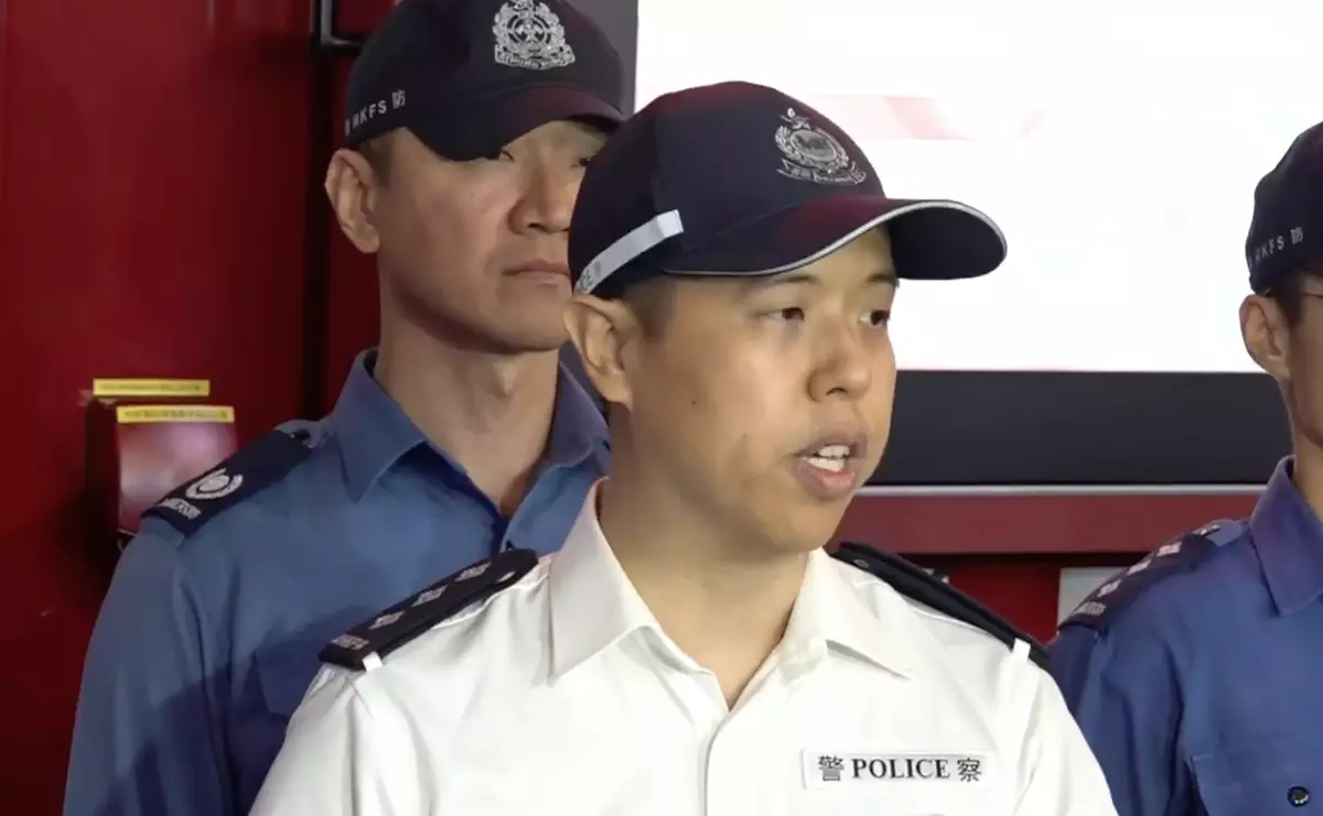 消防處消防區長盧瑞生(中)高級救護主任袁浩章(右)及中區警區行動總督察林康恒(左)向傳媒簡報案情。香港警察FB