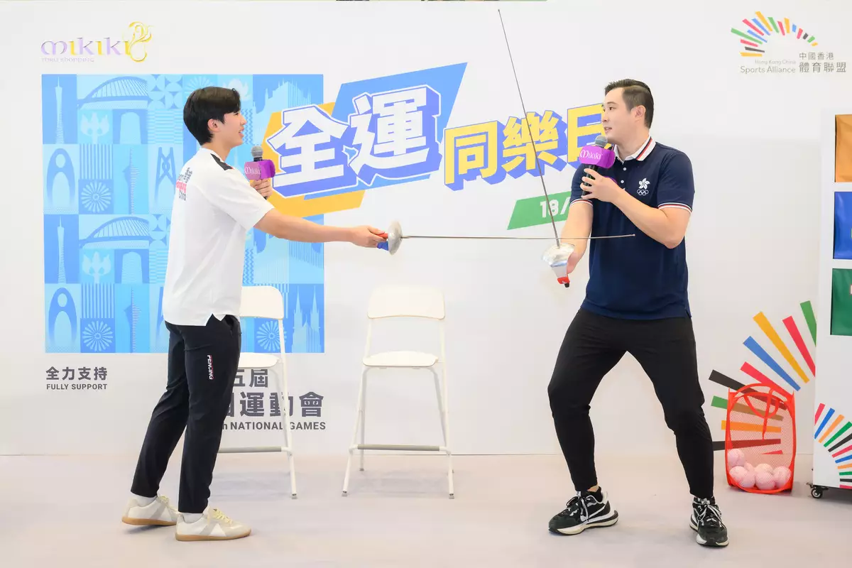 為迎接四年一度的國家級盛事,兼為香港精英運動員加油打氣,由昨日(10月18日)至11月9日,多位香港精英運動員與藝人嘉賓,輪流現身四場「全運同樂日」,打頭陣為今日舉行的「Mikiki x 中國香港體育聯盟『全運同樂日』」,今年七月強勢出道的新生代女團Honey Punch、實力備受肯定的創作歌手TAO TAO黃曦桃,聯同入選十五全運香港劍擊代表隊的佩劍好手陳樂熹(Royce)及「全運同樂日」運動大使唐焯彬(Pan)齊集Mikiki,既與觀眾大玩互動遊戲,Honey Punch與TAO TAO更即場獻唱新歌,帶出年輕人全力支持全運會的信息,號召全城集氣支持香港精英運動員,率先燃點十五全運的熱血氣氛!