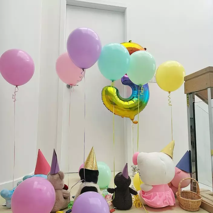 嘉欣在IG晒出與三個小朋友的溫馨合照,她除了準備了色彩繽紛的氣球,還為囡囡的毛公仔朋友們逐一戴上生日,相當有愛!而壽星女Anika全程笑得燦爛,而且越大越靚女!嘉欣又以英文發文祝福囡囡,「真不敢相信你已經三歲啦!Nika Bear生日快樂!你是我們最乖巧、最幽默、永遠笑瞇瞇、開朗外向的小陽光。我們非常幸福能擁有你這盞最明亮的燈火!謝謝你為這個家帶來無盡歡樂與平衡。永遠愛你!」母愛滿瀉!