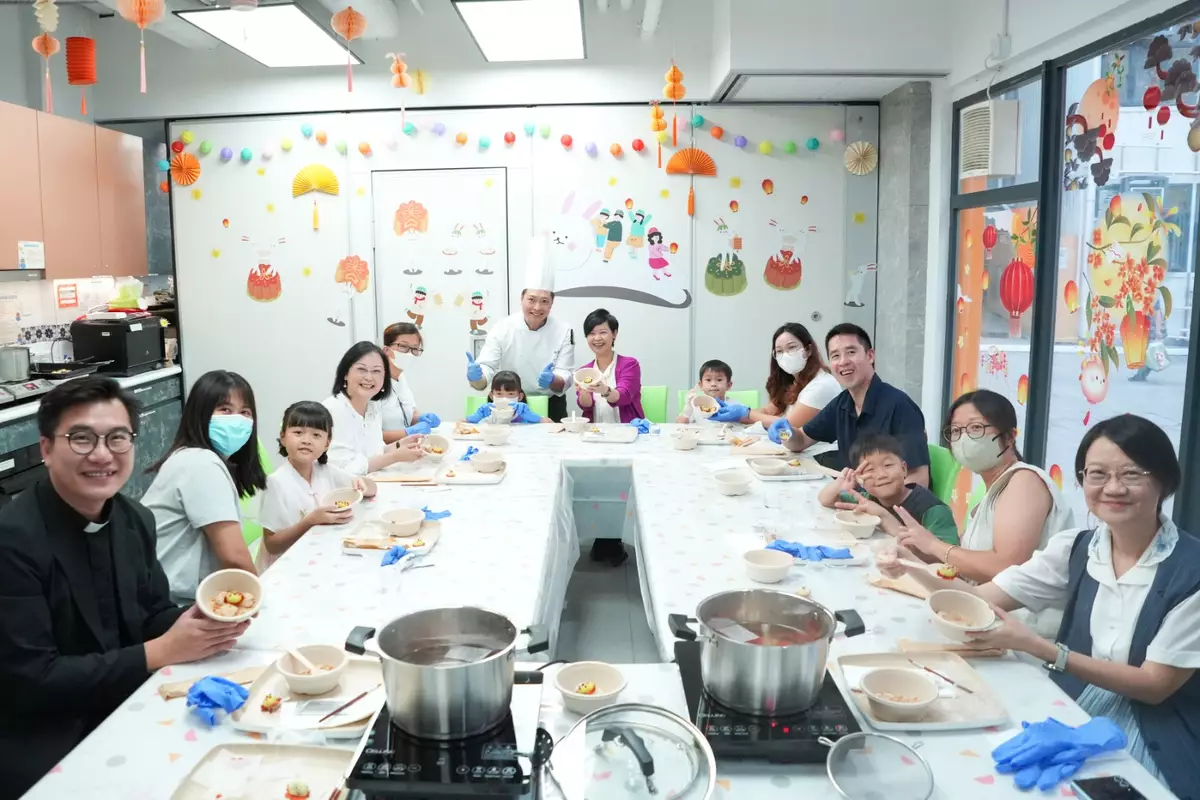 帝港集團區域行政糕餅總廚跟嘉賓及村民一同製作湯圓。