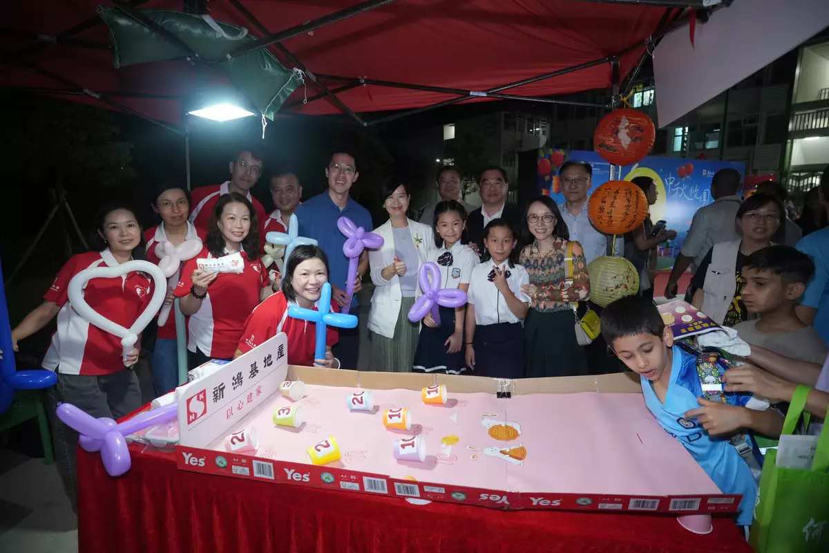 日前,新鴻基地產執行董事郭基煇與房屋局局長何永賢等到訪攸壆路簡約公屋,與居民一同慶祝中秋。新地義工隊亦負責當晚其中一個攤位遊戲,吸引超過250名居民參加。