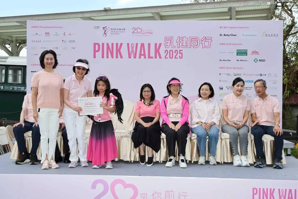 香港乳癌基金會(基金會)年度慈善步行籌款盛事「乳健同行2025」於(10月19日在港島山頂舉行,超過三十位政商界及演藝界現身支持。近二千位粉紅健兒和寵物齊心邁步,為乳癌患者打氣,場面壯觀又溫馨!何超盈的6歲女兒Audrey Rose Ho Xin小小年紀已行善積德,奪得「最年輕籌款者」獎,而香港各界婦女聯合協進會主席何超瓊女士,SBS,JP亦到場支持擔任主禮嘉賓之一。