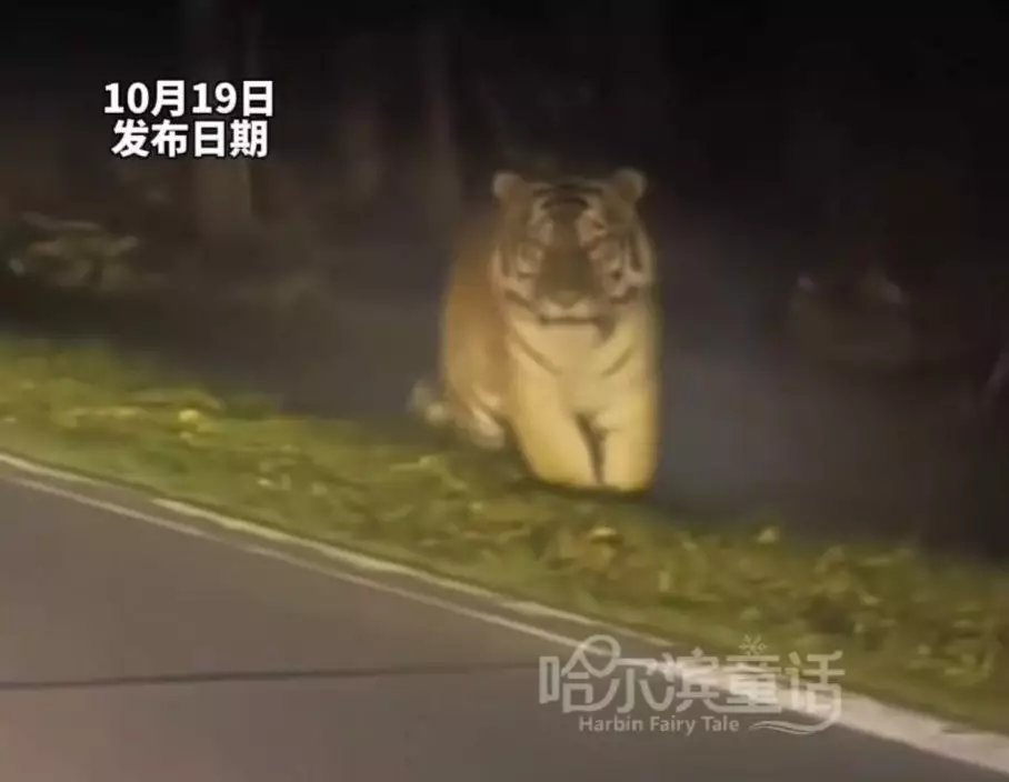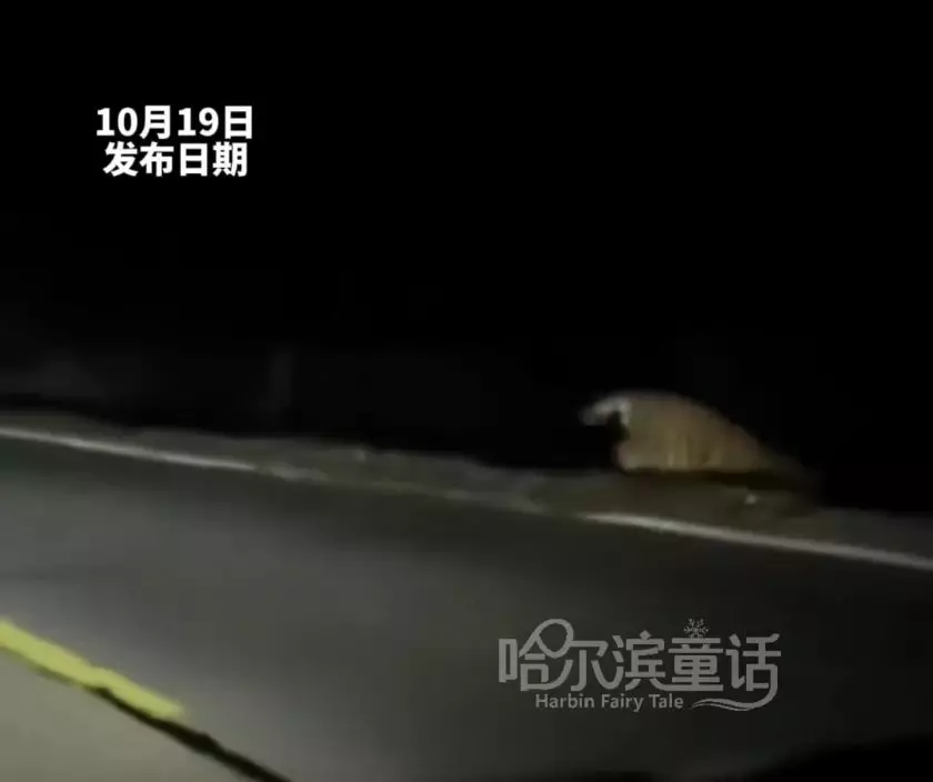 影片可見,東北虎起初似乎準備跳下公路閃避車燈,男子見狀突喊「本地的」。豈料,東北虎聽後竟停下動作,凝視車內片刻後平靜離去,整個過程僅數秒卻驚心動魄。