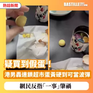 近日,有港男在社交平台Threads發文,聲稱在連鎖超市買到「假雞蛋」。他圖文並茂指控,雞蛋煮熟後蛋黃異常堅韌,不但用力按壓不散,更可如擦膠甚至乒乓球般在桌面和地上彈跳。