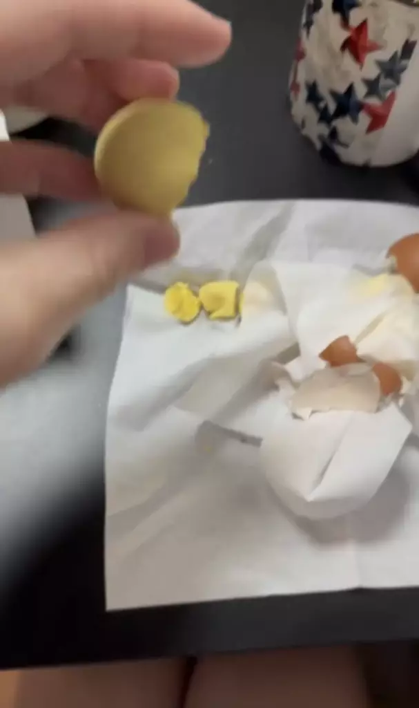 蛋黃完好無缺,展現驚人「彈力」。Threads截圖
