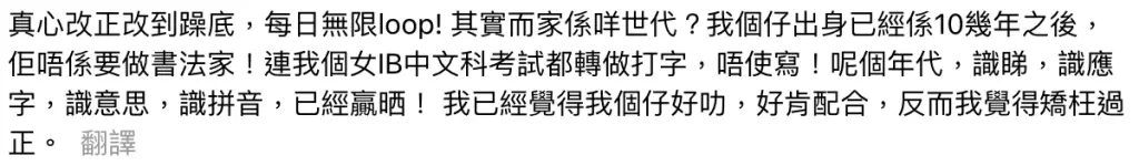 有港媽在社交平台Threads發文,指為兒子改正功課改到「躁底」,直言:「個仔出身已經係十幾年之後,佢又唔係要做書法家!」她認為現今世代「識睇、識認字、識意思、識拼音」已足夠,批評學校對寫字規範過份執著,是「矯枉過正」。