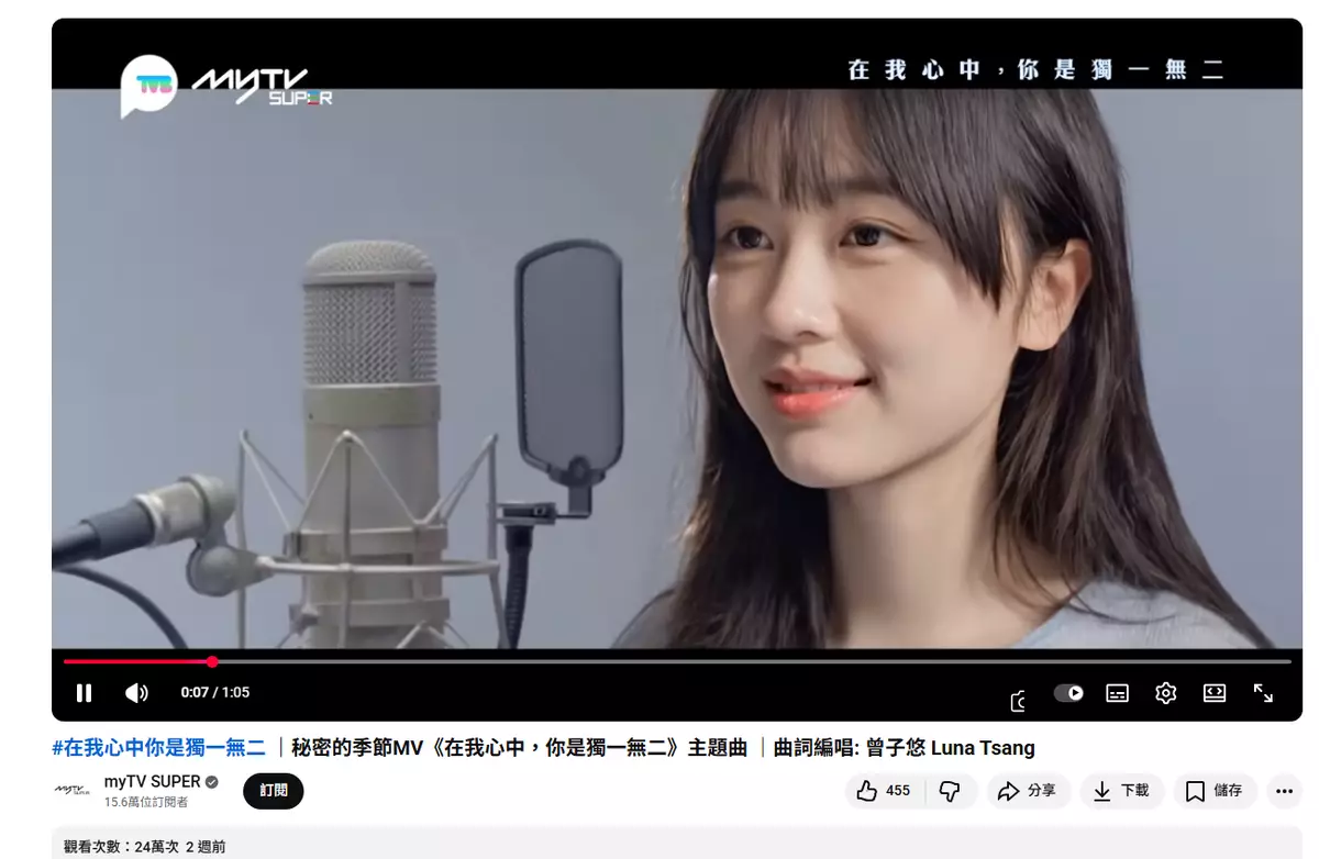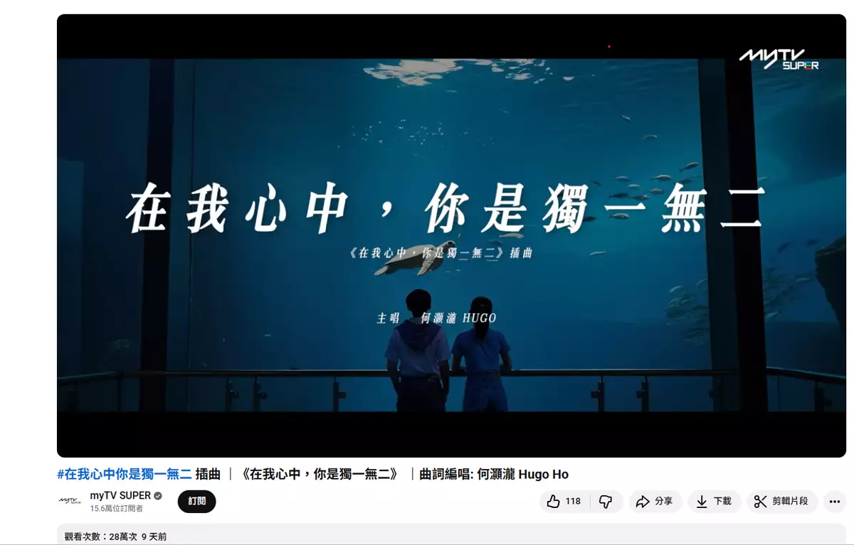 《在我心中,你是獨一無二》主題曲及插曲觀看數逾52萬。