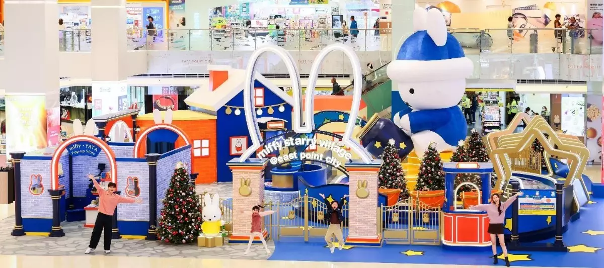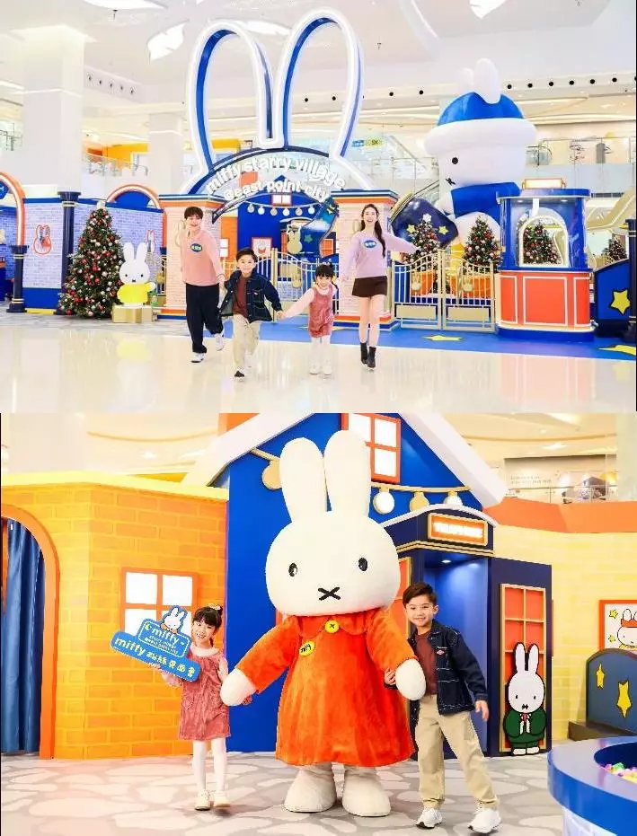 閃亮動人的miffy 星河小鎮大街,讓人彷彿步入童話繪本的夢幻國度,沿途可看到 miffy 的可愛裝飾,歡迎坐在巨型miffy壁畫前打卡,留下最美一刻!