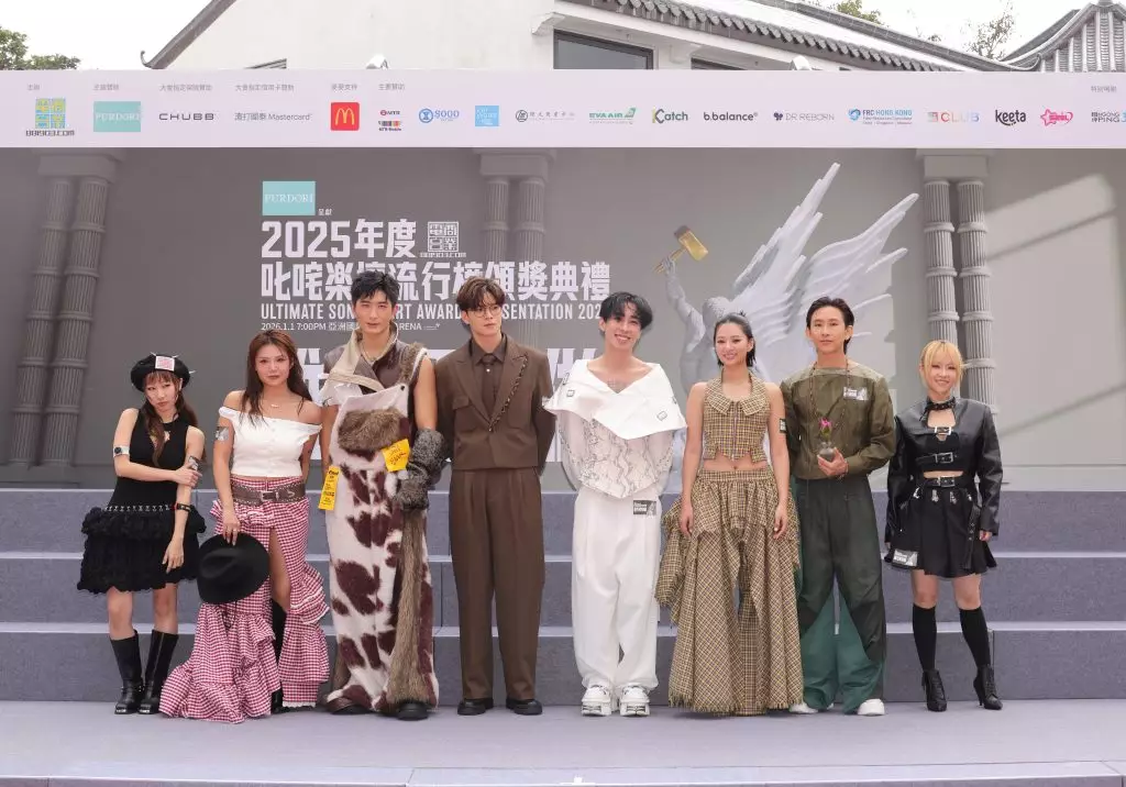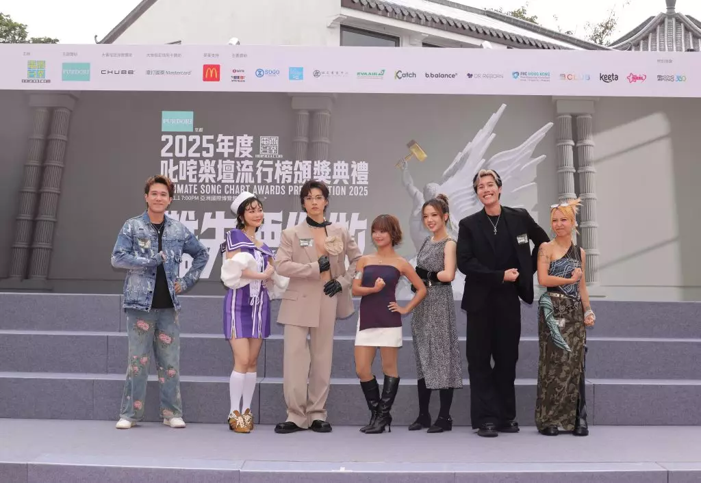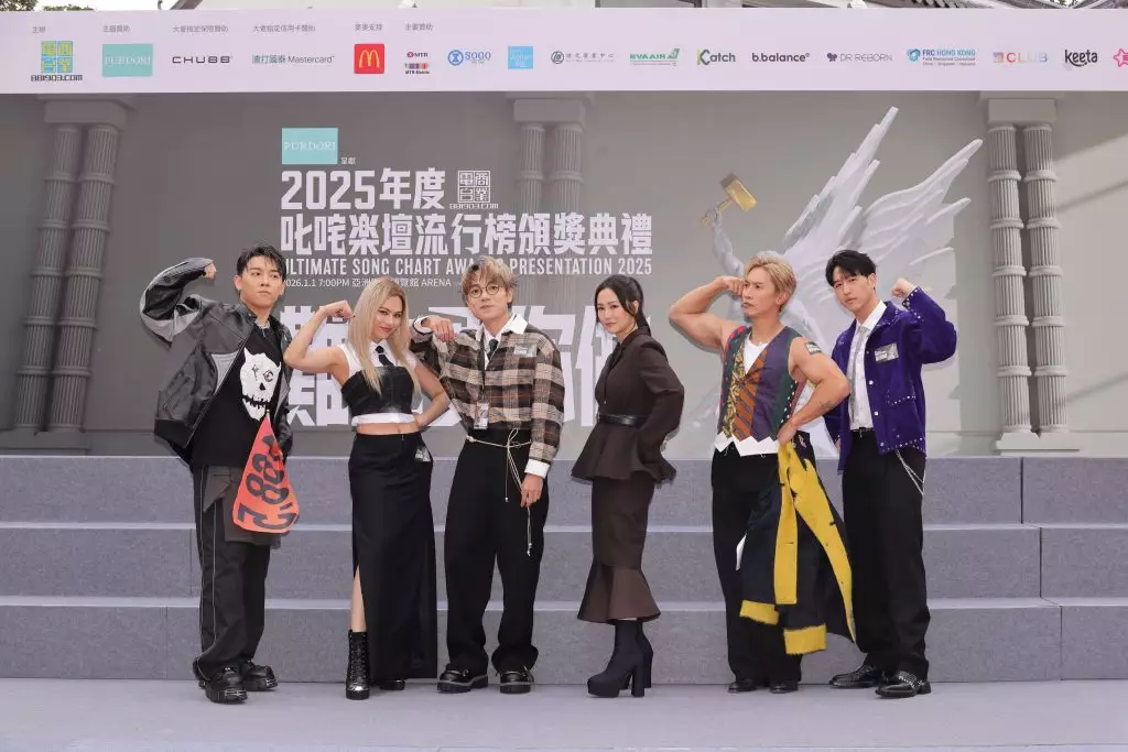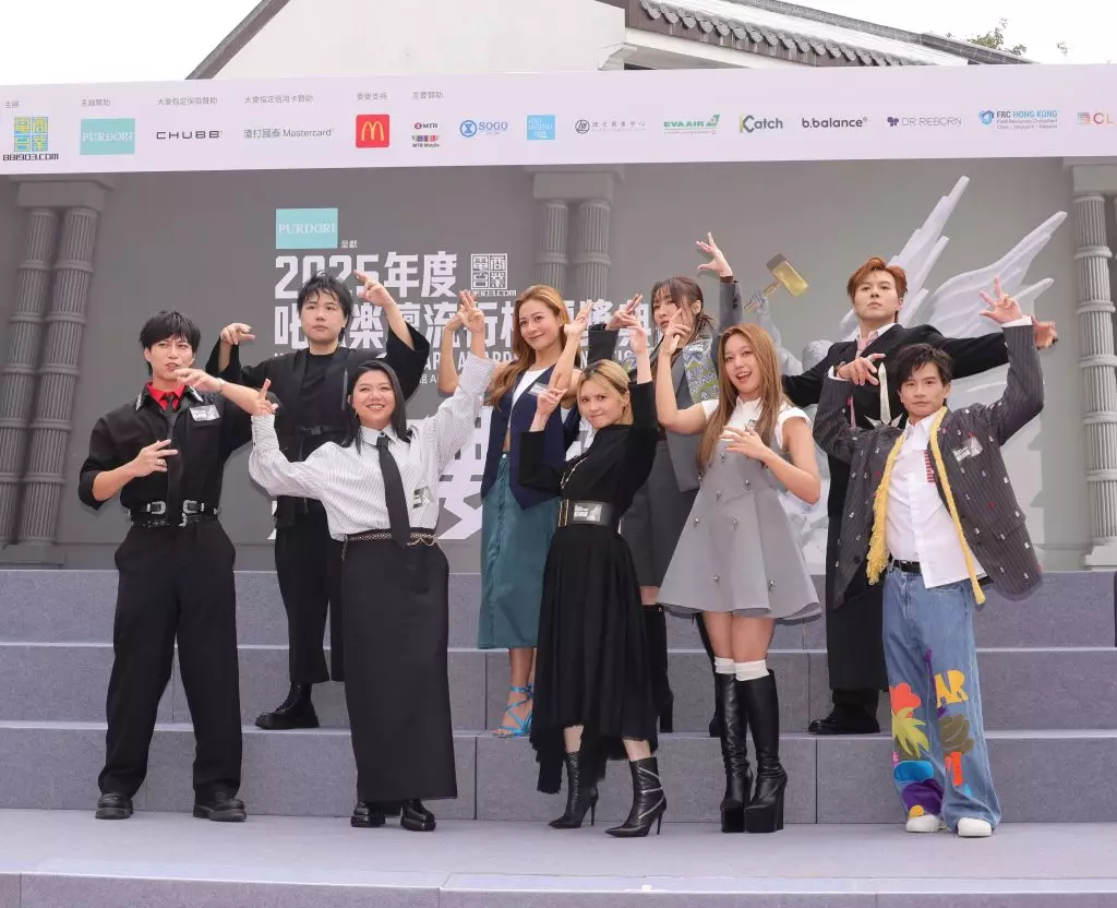 商業電台主辦《2025年度叱咤樂壇流行榜頒獎典禮》於昂坪市集舉行,商業電台董事及行政總裁陳靜嫻小姐、PURDORI Marketing Director Ms. Amy Tse、昂坪360董事總經理董沛銓先生、出席歌手及叱咤903 DJ進行大合照。