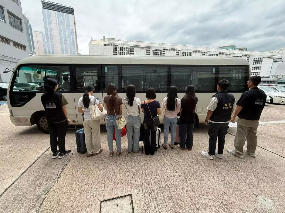 行動中,警方拘捕32名內地女子及12名非華裔女子,年齡介乎17至52歲,涉嫌「違反逗留條件」。所有被捕人現正被扣留調查,部份被捕人稍後將交由相關部門跟進。