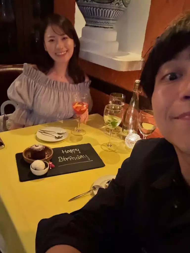 「坤哥」吳業坤的老婆浜口愛子剛剛31歲生日,坤哥帶老婆外出用餐慶生,未吃甜品已甜到漏!