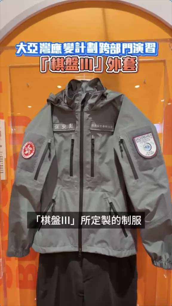 鄧炳強特別為大家介紹一件內外兼備的「棋盤技術外套」,展覽中還展示了兩個對保安局非常有代表性的歷史場景,見證了保安局無時無刻守護社會安穩,亦會在關鍵時刻挺身而出,保護市民,大家又是否能估中究竟是哪兩個歷史時刻?