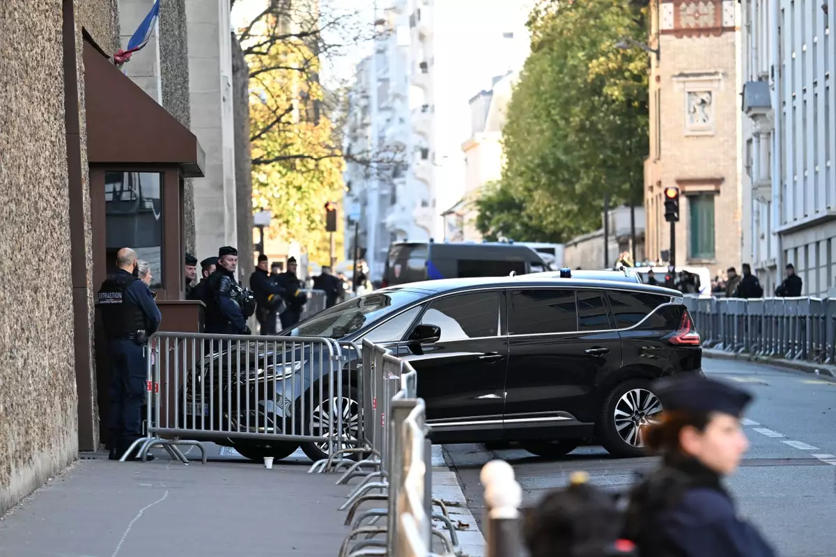 法國前總統薩科齊所乘車輛於 10 月 21 日抵達巴黎拉桑特監獄,開始服刑。AP圖片