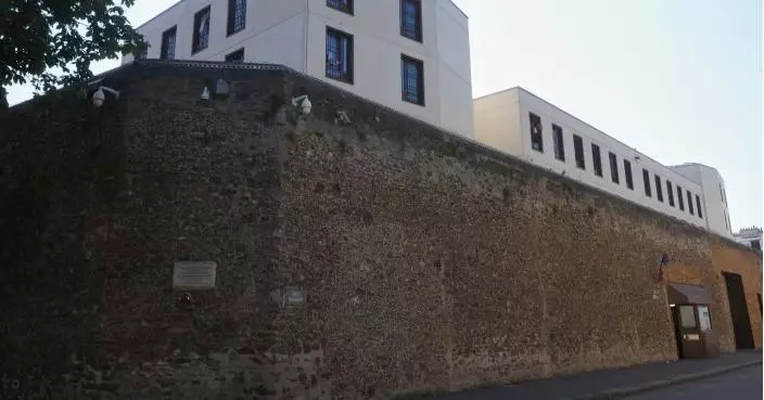 巴黎「拉桑特監獄」外牆。薩爾科齊於 10 月 21 日早上抵達服刑。AP 圖片