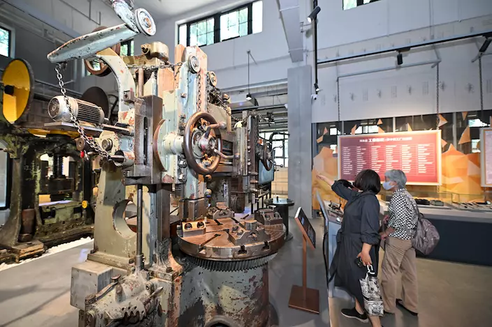 遊客在天津機床工業博物館內參觀機床設備。新華社圖片