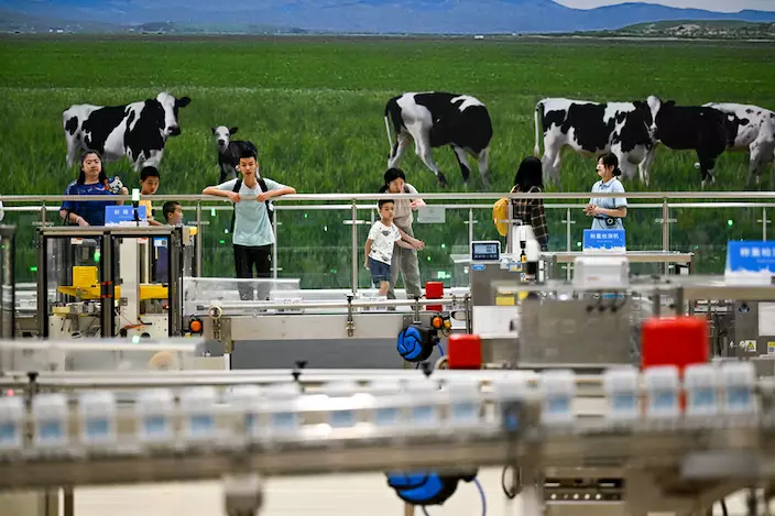 遊客在呼和浩特市伊利現代智慧健康谷液態奶全球智造標桿基地參觀。新華社圖片