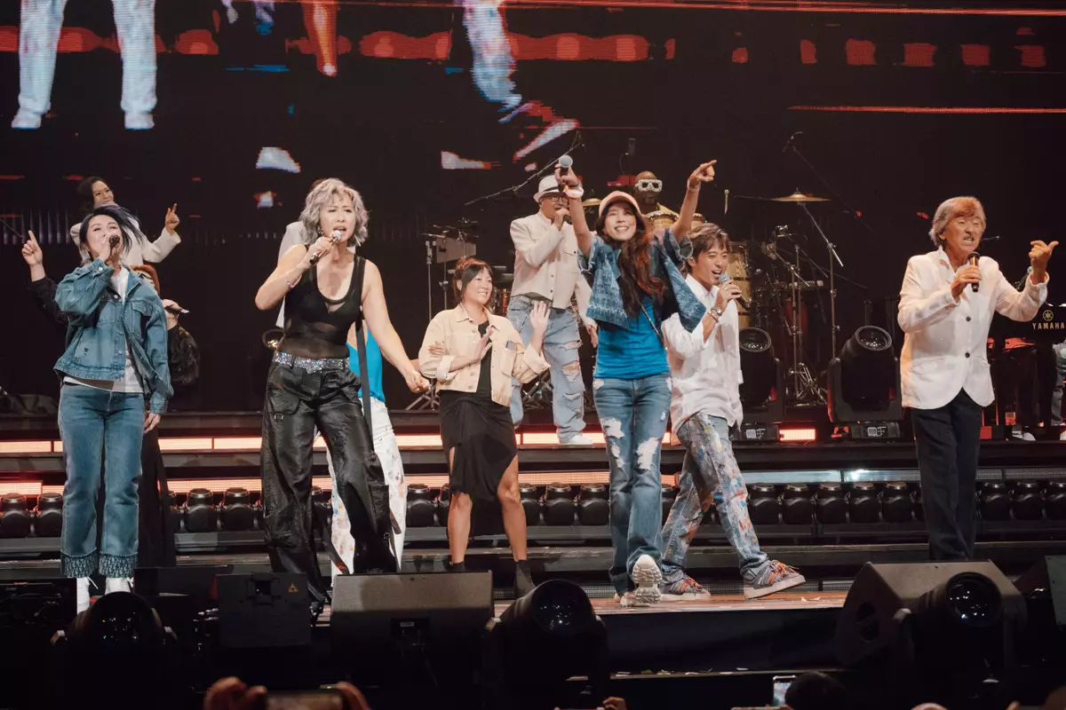 阿Lam兒子林德信及女兒林德懿、來睇show的楊千嬅、莫文蔚同黃博全部上台。