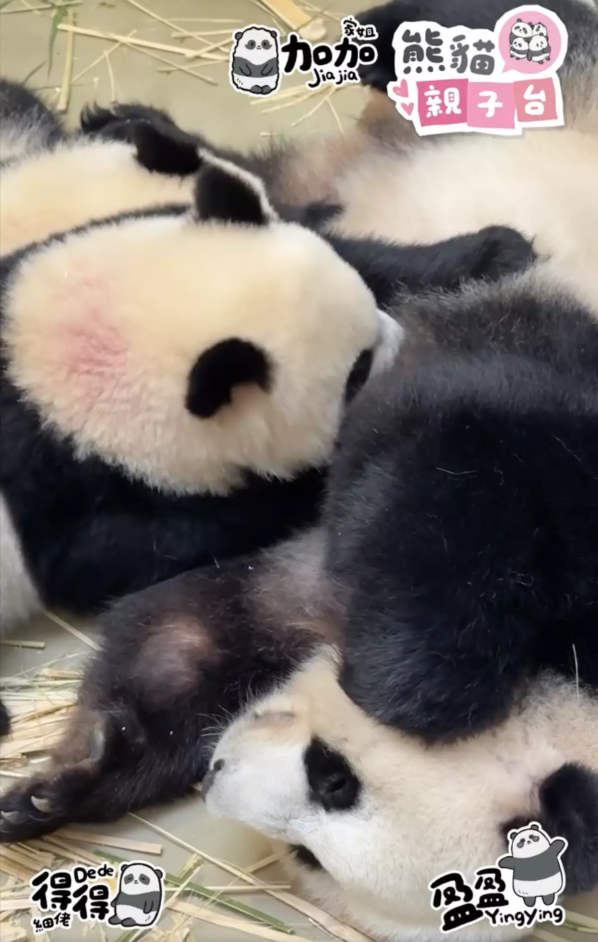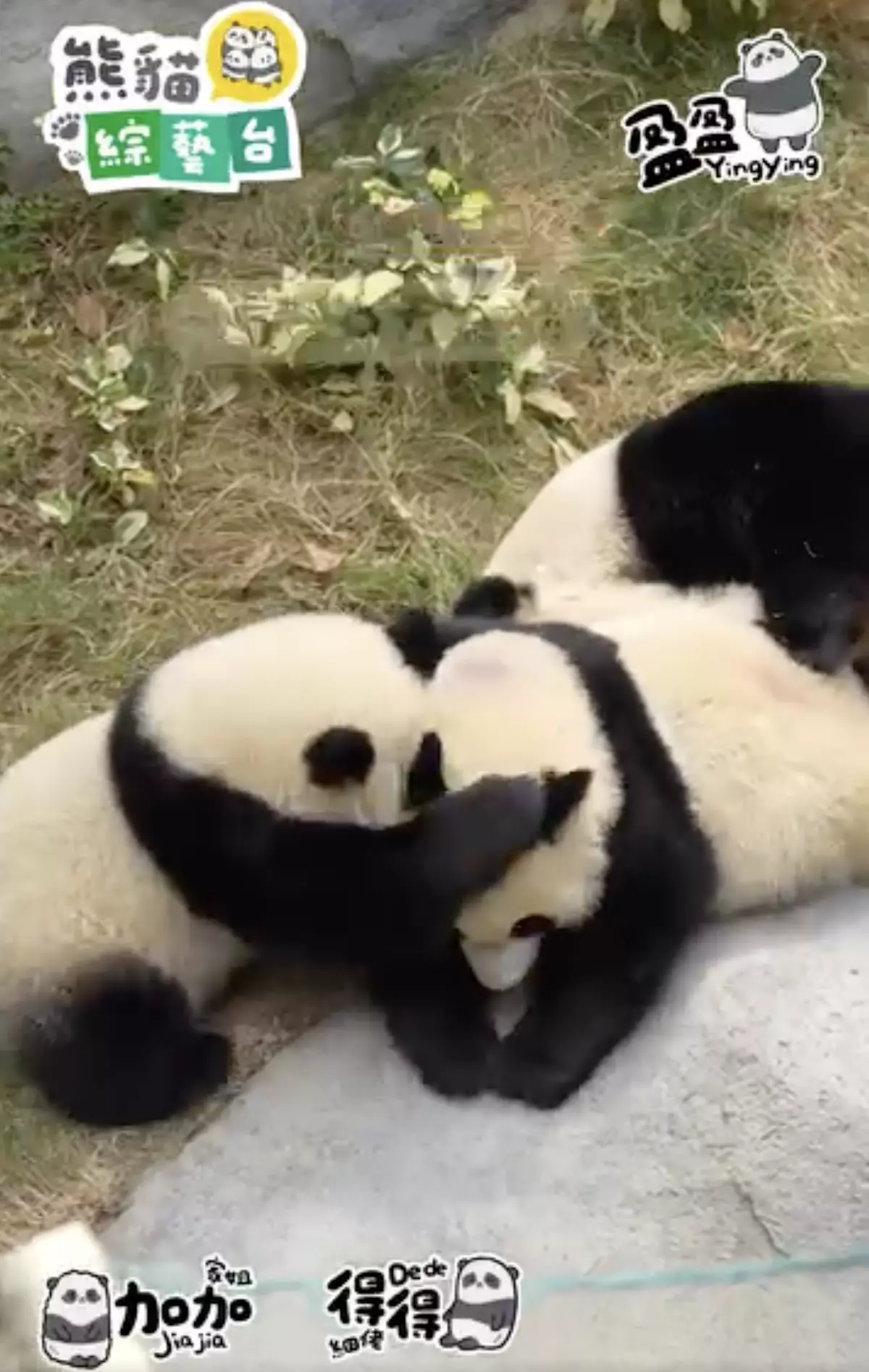 海洋公園再發放大熊貓盈盈和家姐加加和細佬得得的片段,一開始只見一家三口打過不亦樂乎,但鏡頭一轉兩小隻就安安靜靜挨在盈盈身上飲奶,「反差萌」令人唔捨得唔睇!