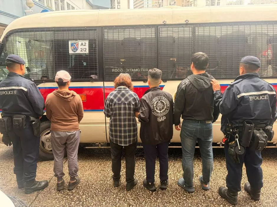行動中,警方拘捕5名本地男子、2名內地男子、1名外籍男子、2名本地女子及17名內地女子,年齡介乎26至62歲。警方圖片