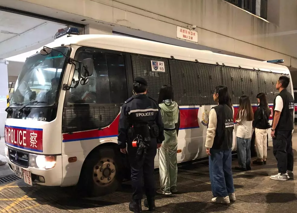 行動中,警方拘捕5名本地男子、2名內地男子、1名外籍男子、2名本地女子及17名內地女子,年齡介乎26至62歲,分別涉嫌「違反逗留條件」、「協助及教唆他人違反逗留條件」、「遭拒絕給予在香港入境的准許人士接受僱傭工作」、「非法入境」、「行使僞造文件」、「僱用不可合法受僱的人」及「通緝人士」。