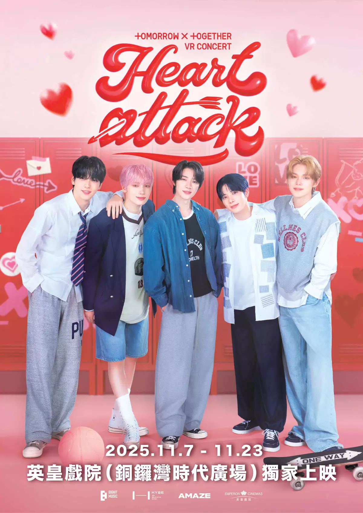 韓國超人氣男團TOMORROW X TOGETHER(TXT)相隔約八個月以全新VR演唱會電影《TOMORROW X TOGETHER VR CONCERT : HEART ATTACK》強勢回歸,並成為K-POP領域首個連續推出第二季VR演唱會的團體。