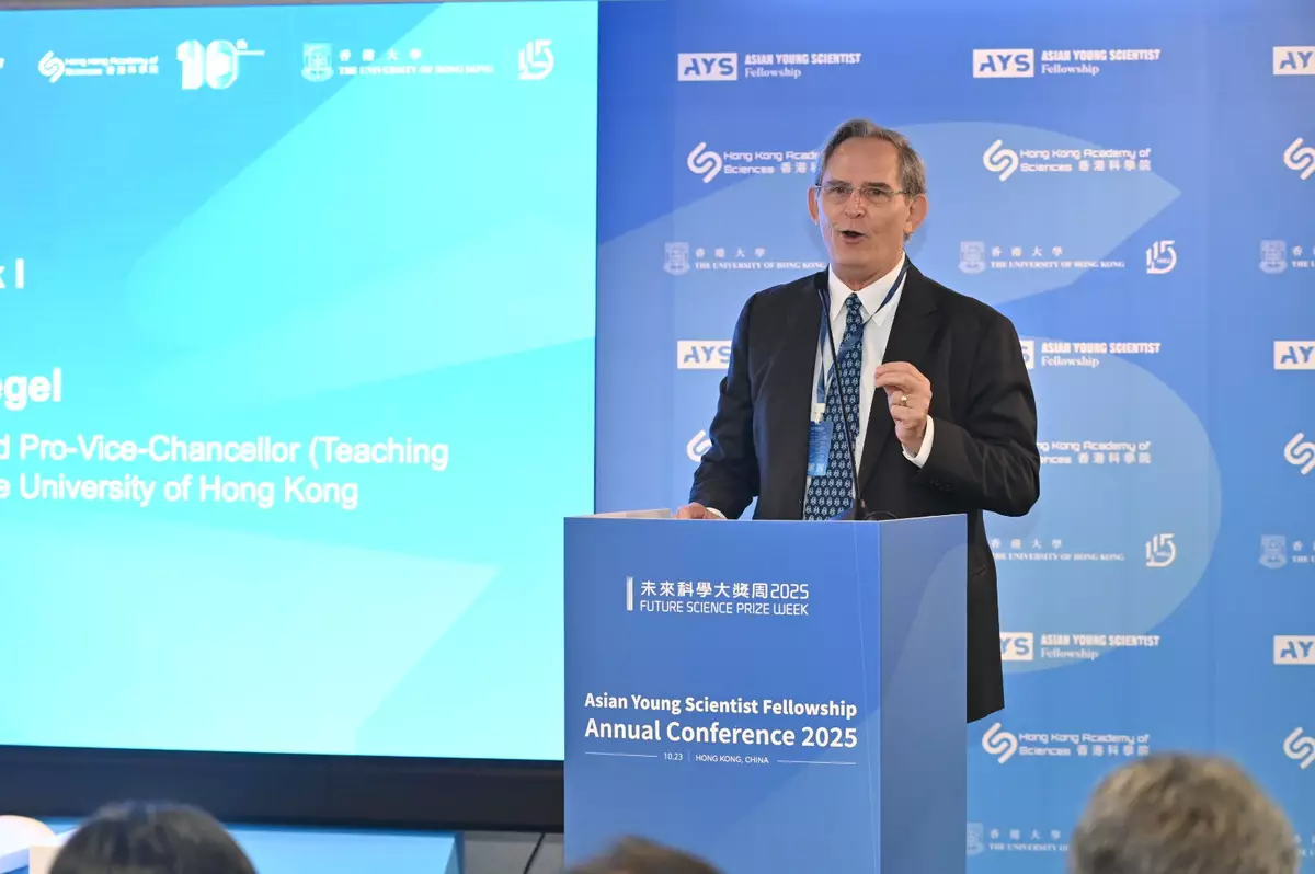 「亞洲青年科學家基金項目」2025年度會議在香港大學舉行,香港大學副校長(教學)施啟正教授致開幕辭。(圖片由未來科學大獎提供)