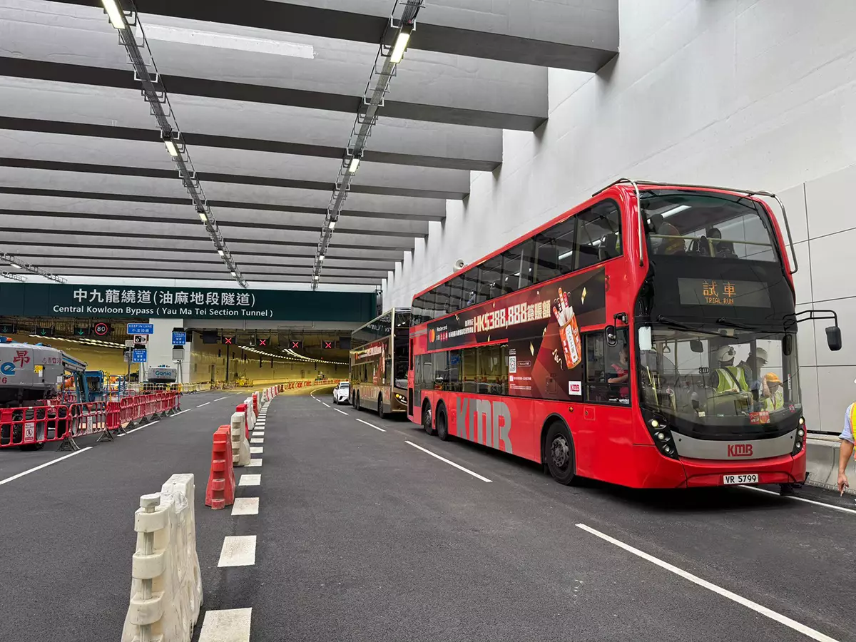 中九龍繞道巴士試車。運輸及物流局圖片