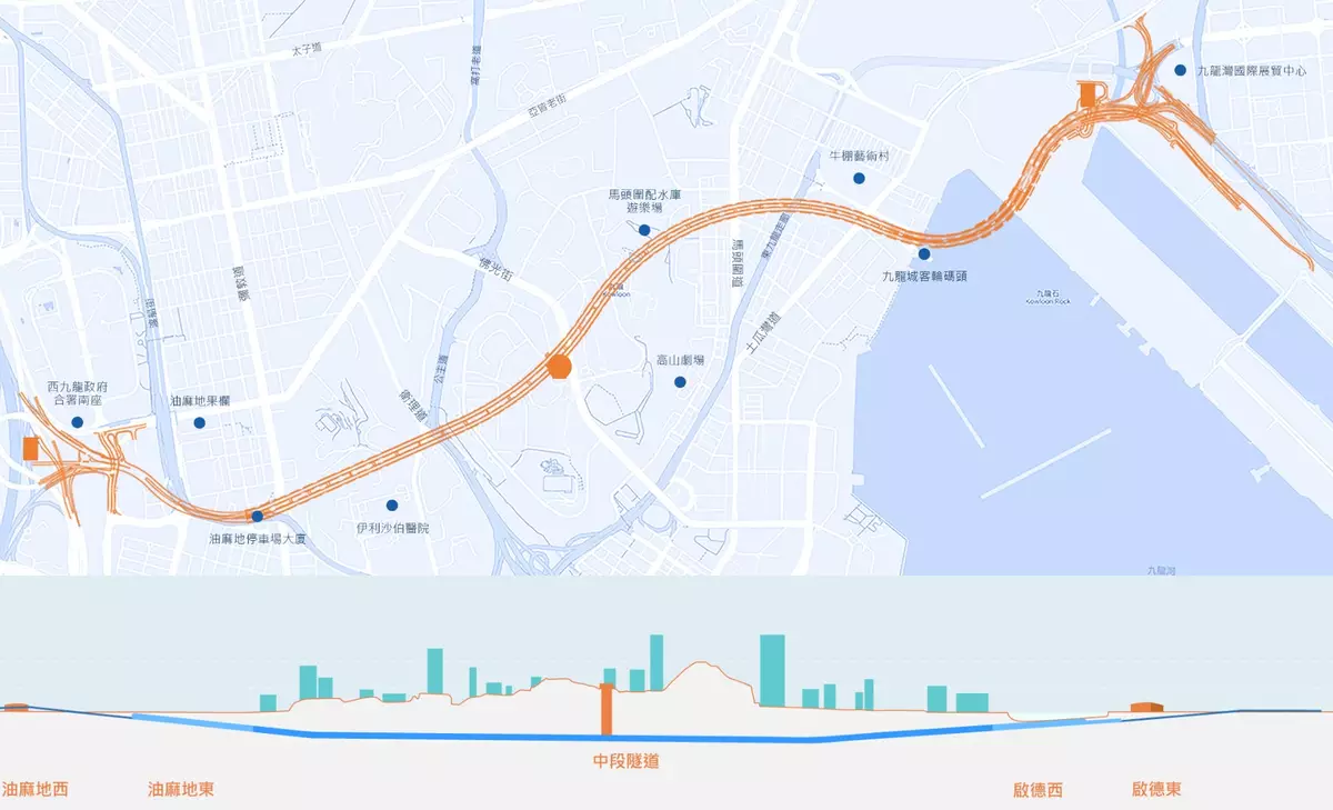 中九龍繞道油麻地段。運輸及物流局圖片