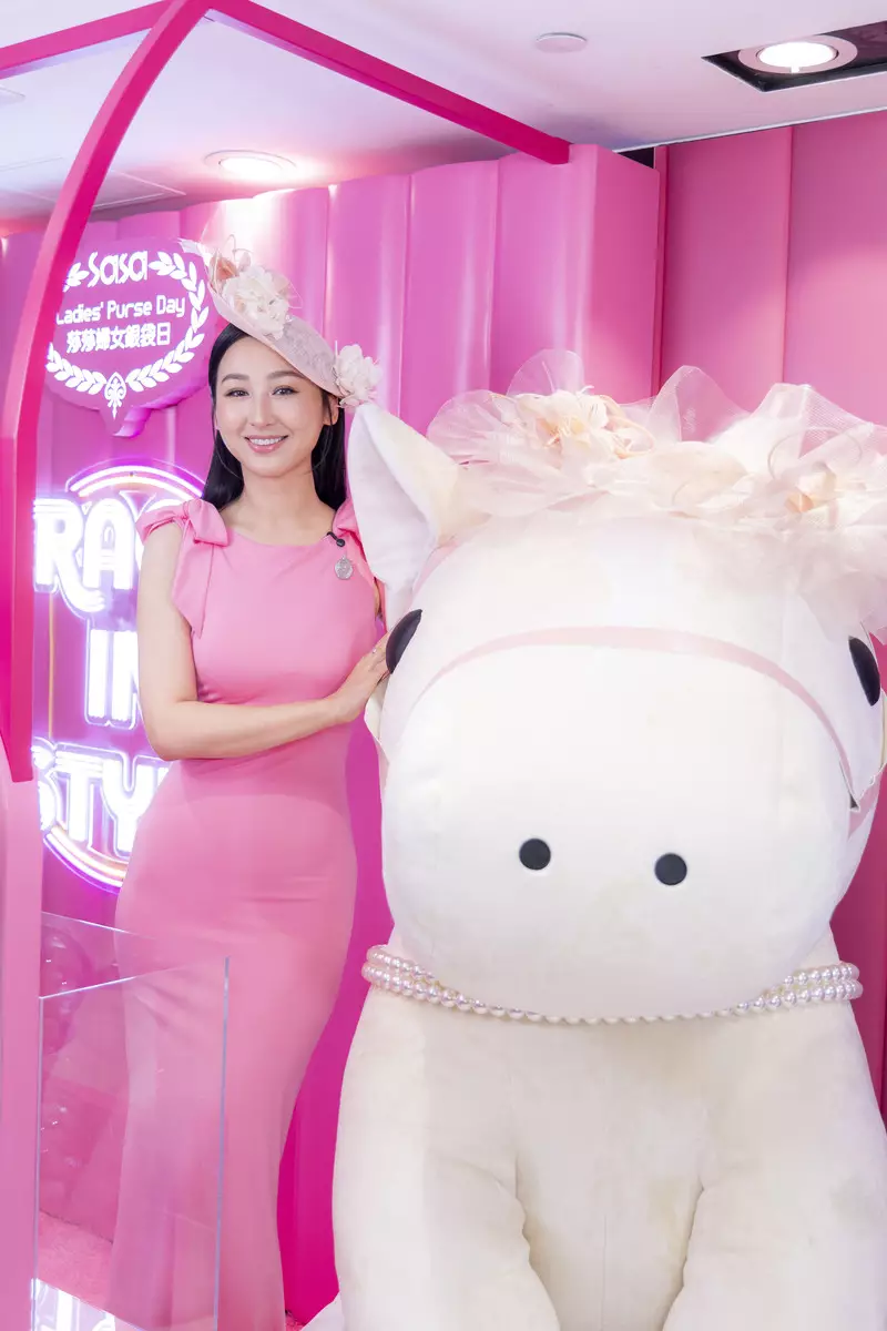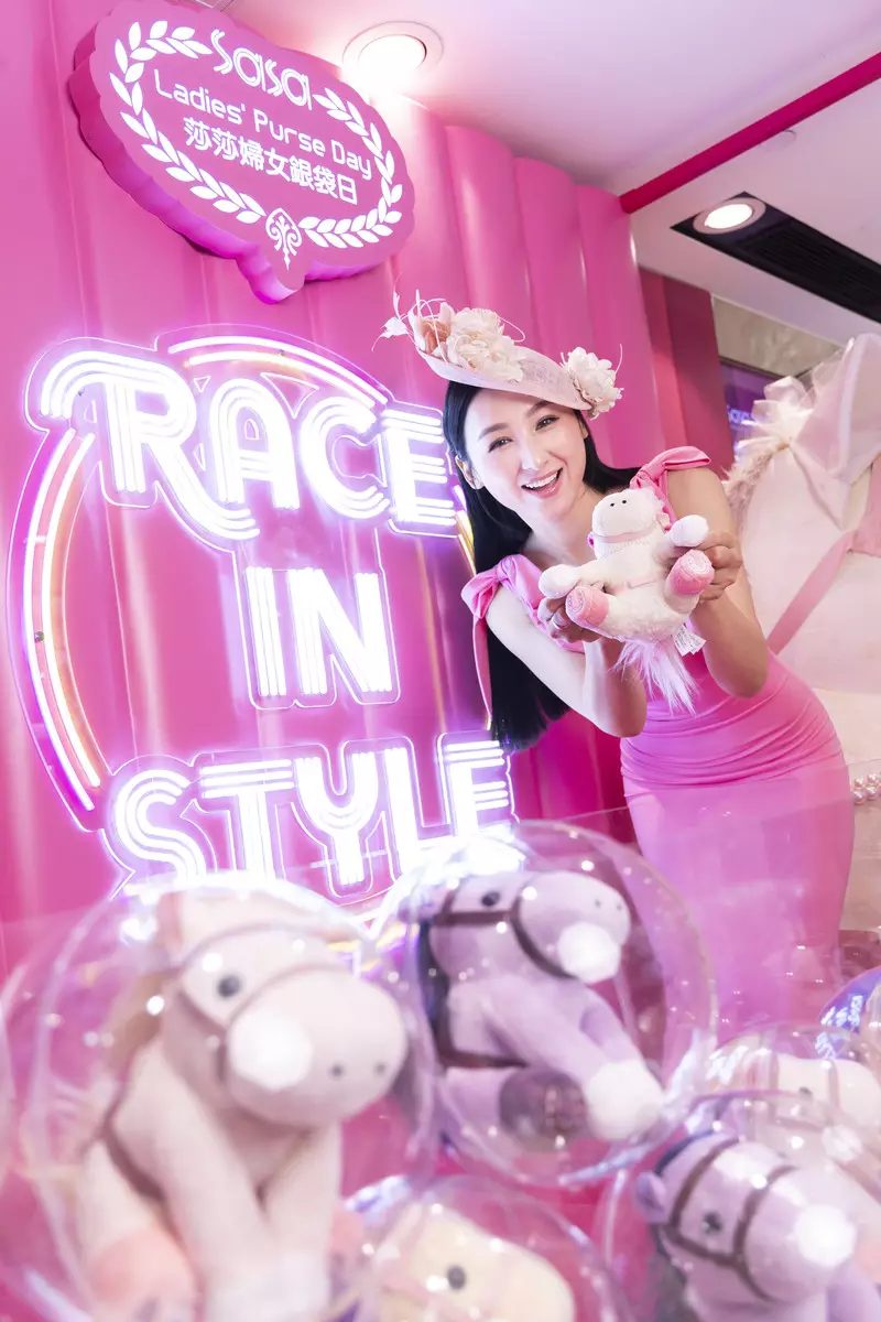 記者會上,接棒成為「莎莎婦女銀袋日」活動形象大使的高Ling,「粉紅氣場」全開,以一襲優雅粉紅長裙與設計師Phoebe Leung的特製帽飾,完美示範「優雅殺」!高Ling更興奮地表示:「一直以來都知道這活動被譽為『最美賽馬日』,是一個集美與時尚於一身的賽馬盛會,今次有幸成為活動大使,我已經準備就緒,要和大家一起以最美一面參與11月9日的活動!」